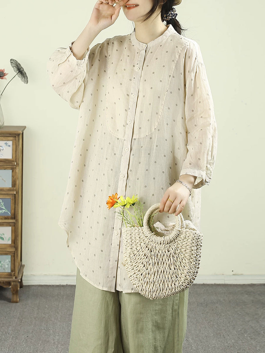 Γυναικεία Μπλούζα Artsy Spring Dot Stand Collar από 100% Ραμί
