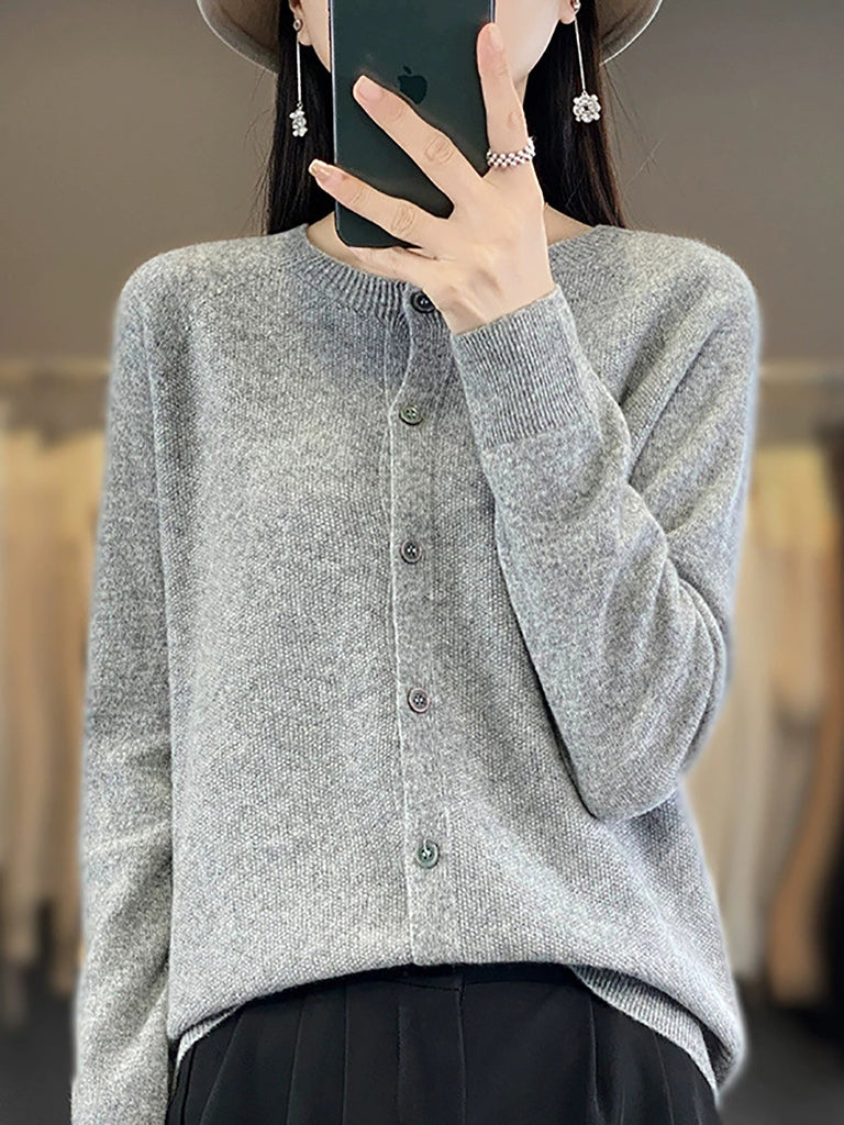Γυναικείο Φθινοπωρινό Casual Πουλόβερ με Πλεκτό Μάλλινο Ζακέτα και O-Neck