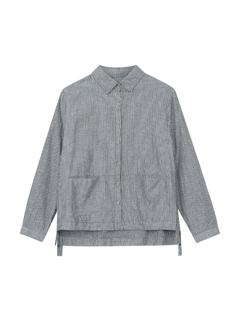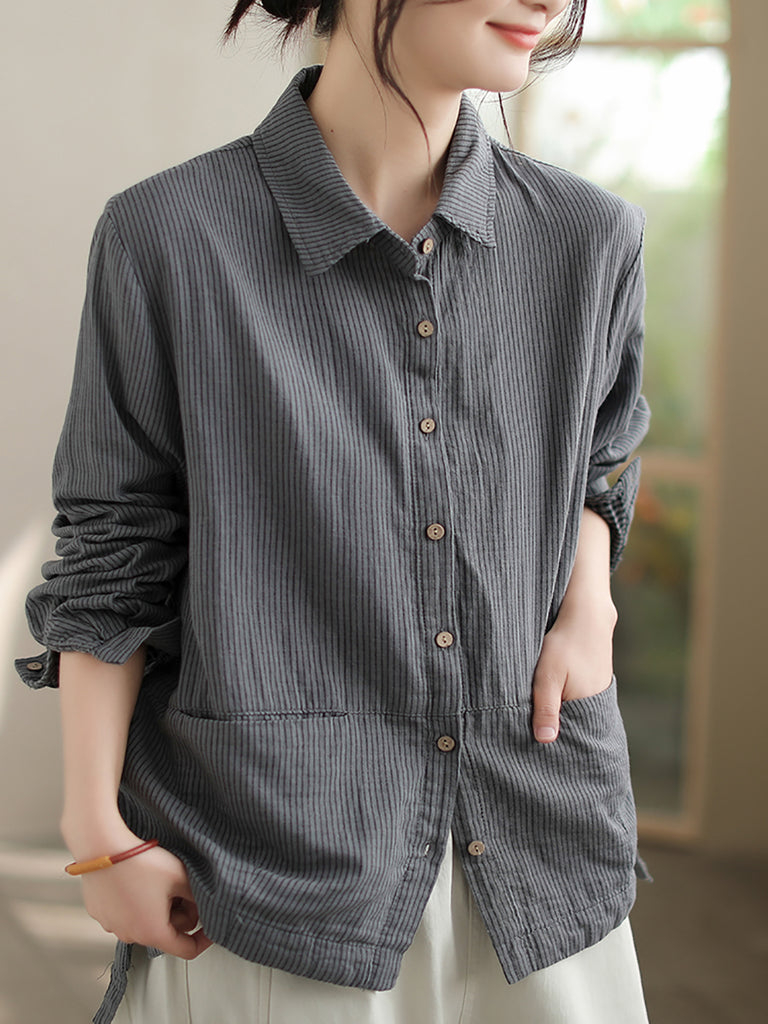 Γυναικείο πουκάμισο με ρίγες και γιακά από 100% βαμβάκι με φθινοπωρινό γιακά