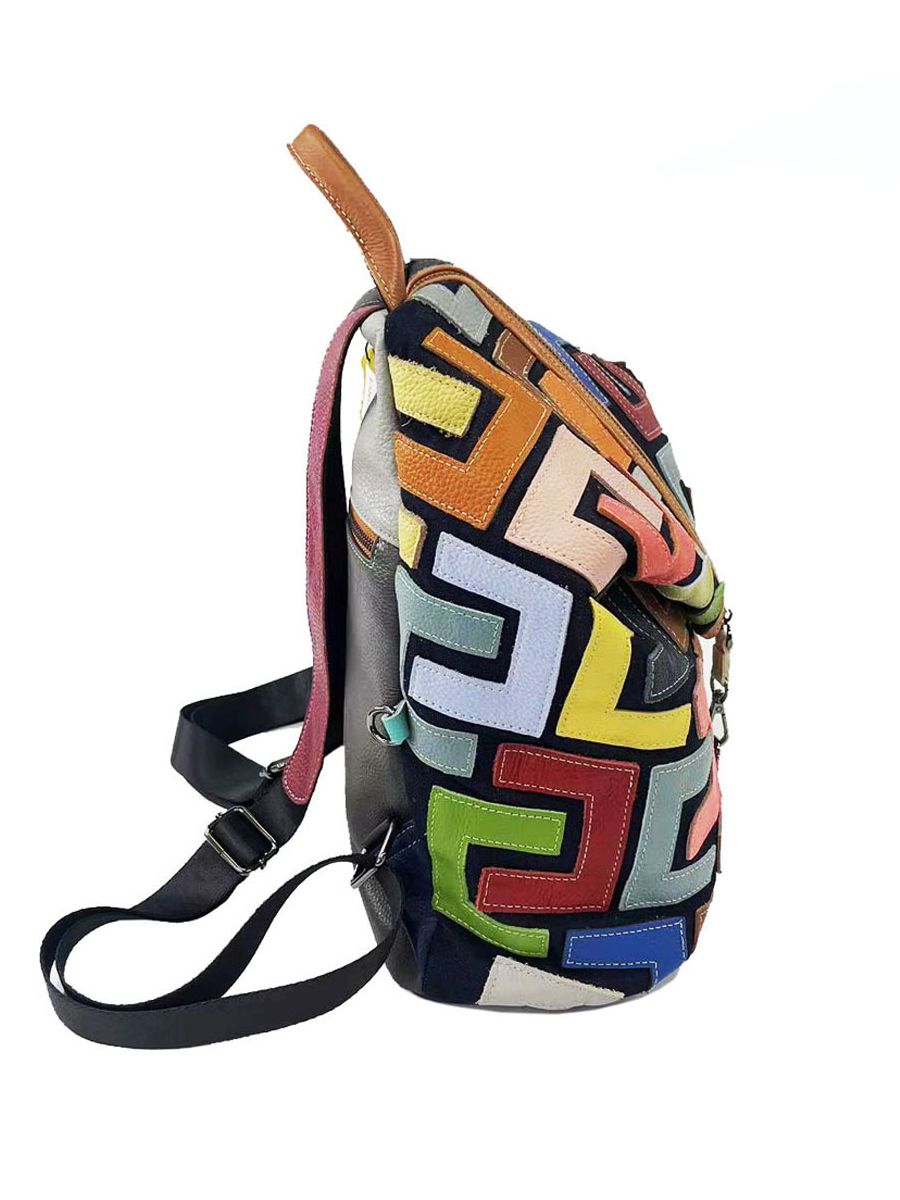 Γυναικείο πολύχρωμο δερμάτινο σακίδιο πλάτης