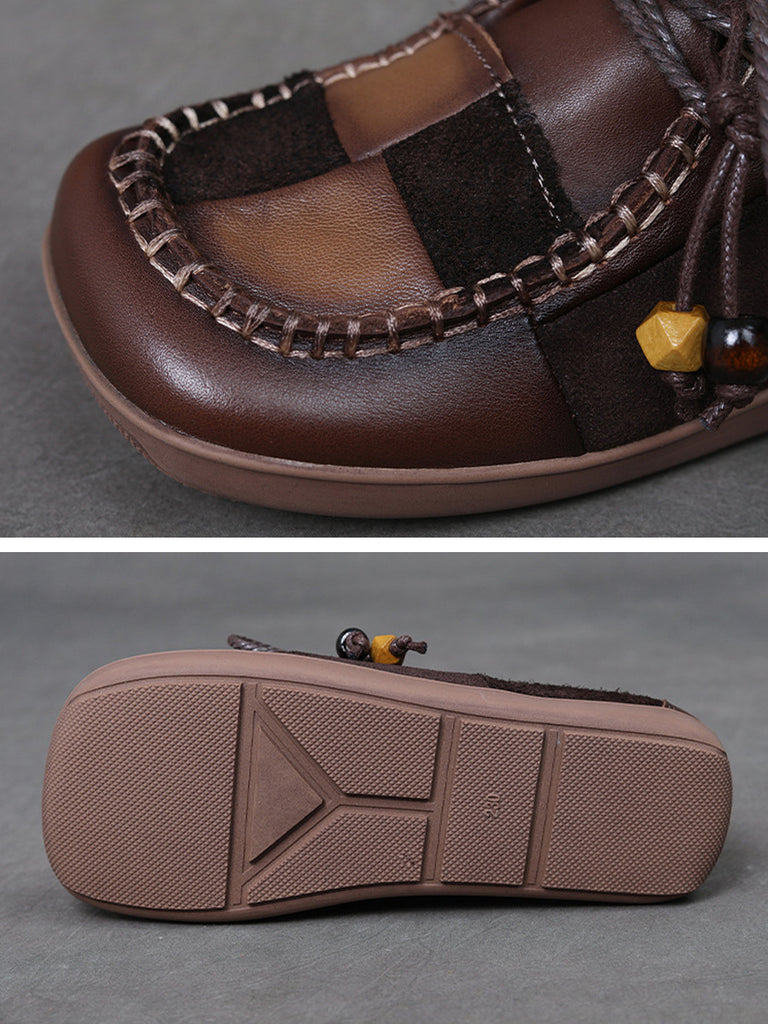 Γυναικεία ρετρό γνήσια δερμάτινα καρό φλατ παπούτσια με ραφές
