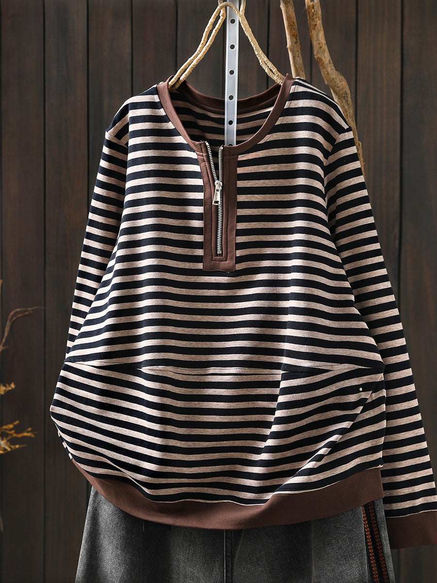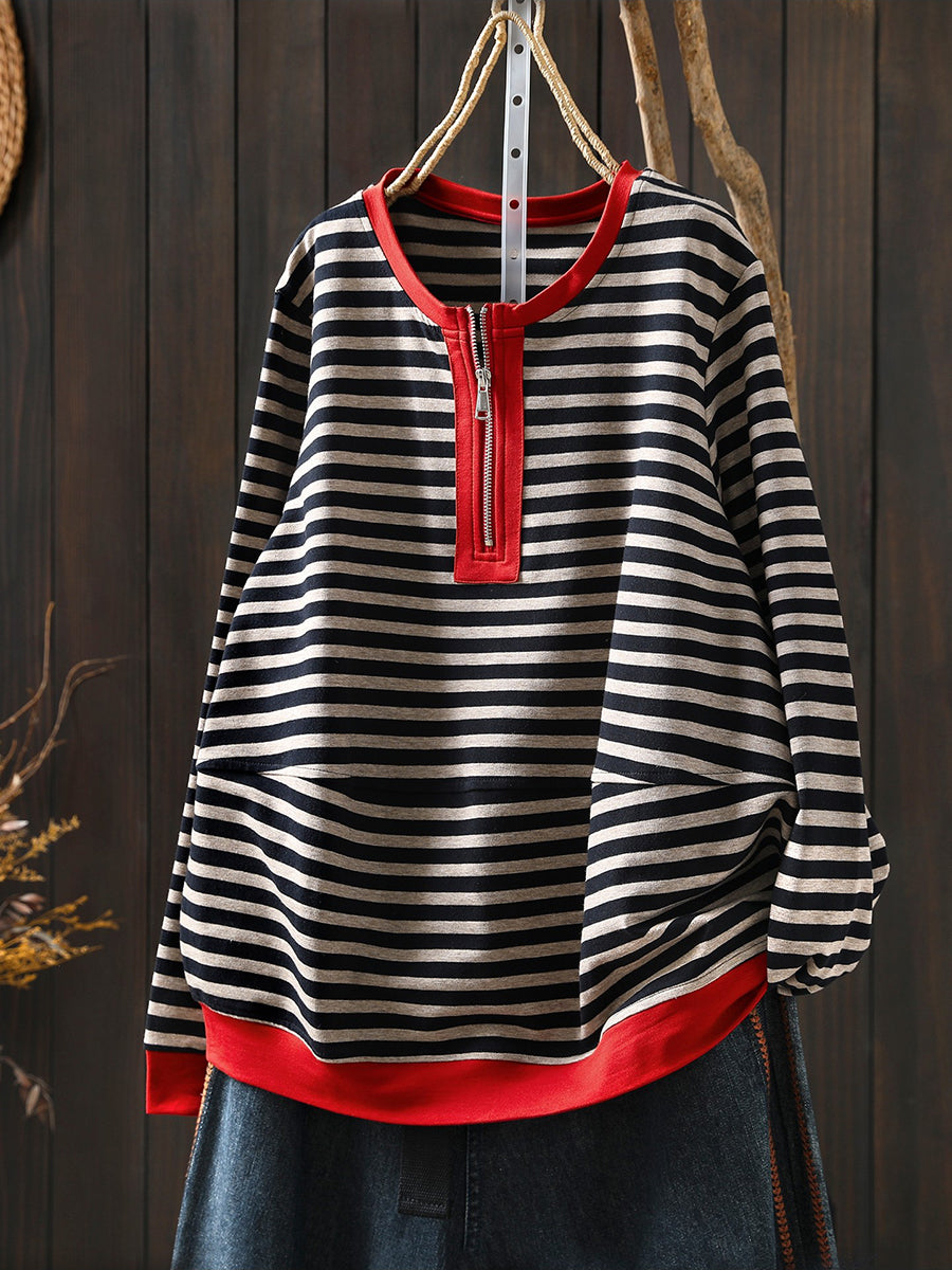 Γυναικεία ανοιξιάτικη μπλούζα με ρίγες από βαμβάκι και λαιμόκοψη O