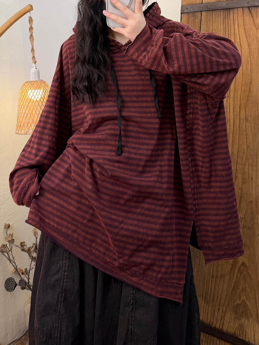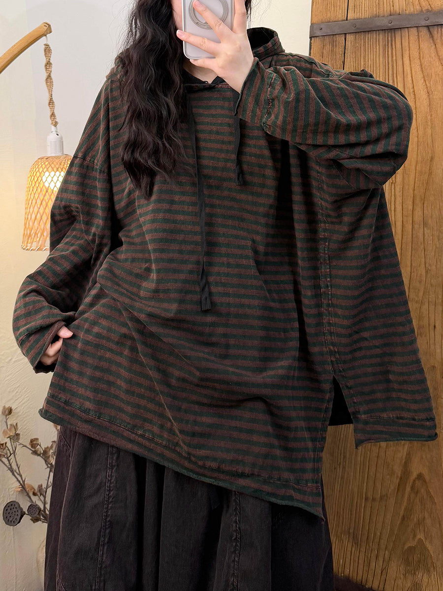 Γυναικείο Φούτερ με Κουκούλα από Βαμβάκι με Ρετρό Ρίγες