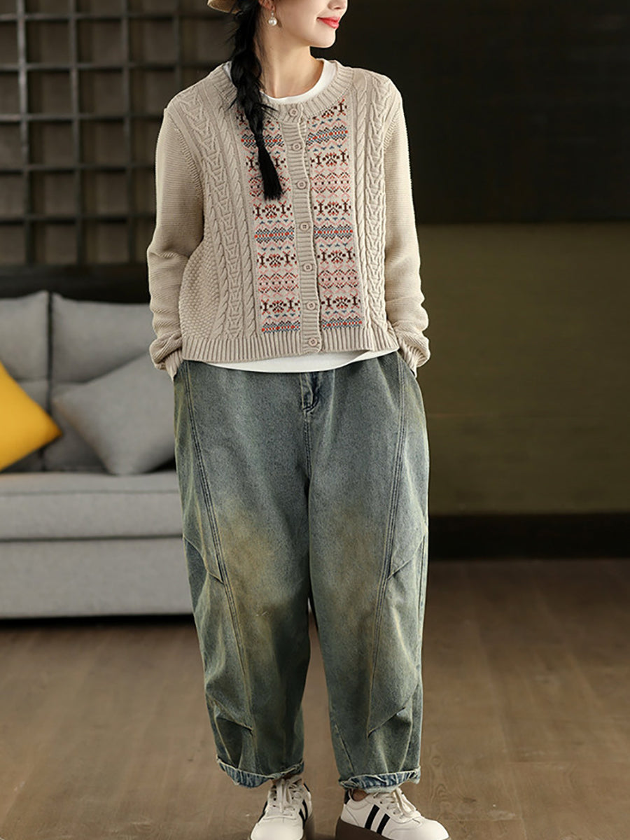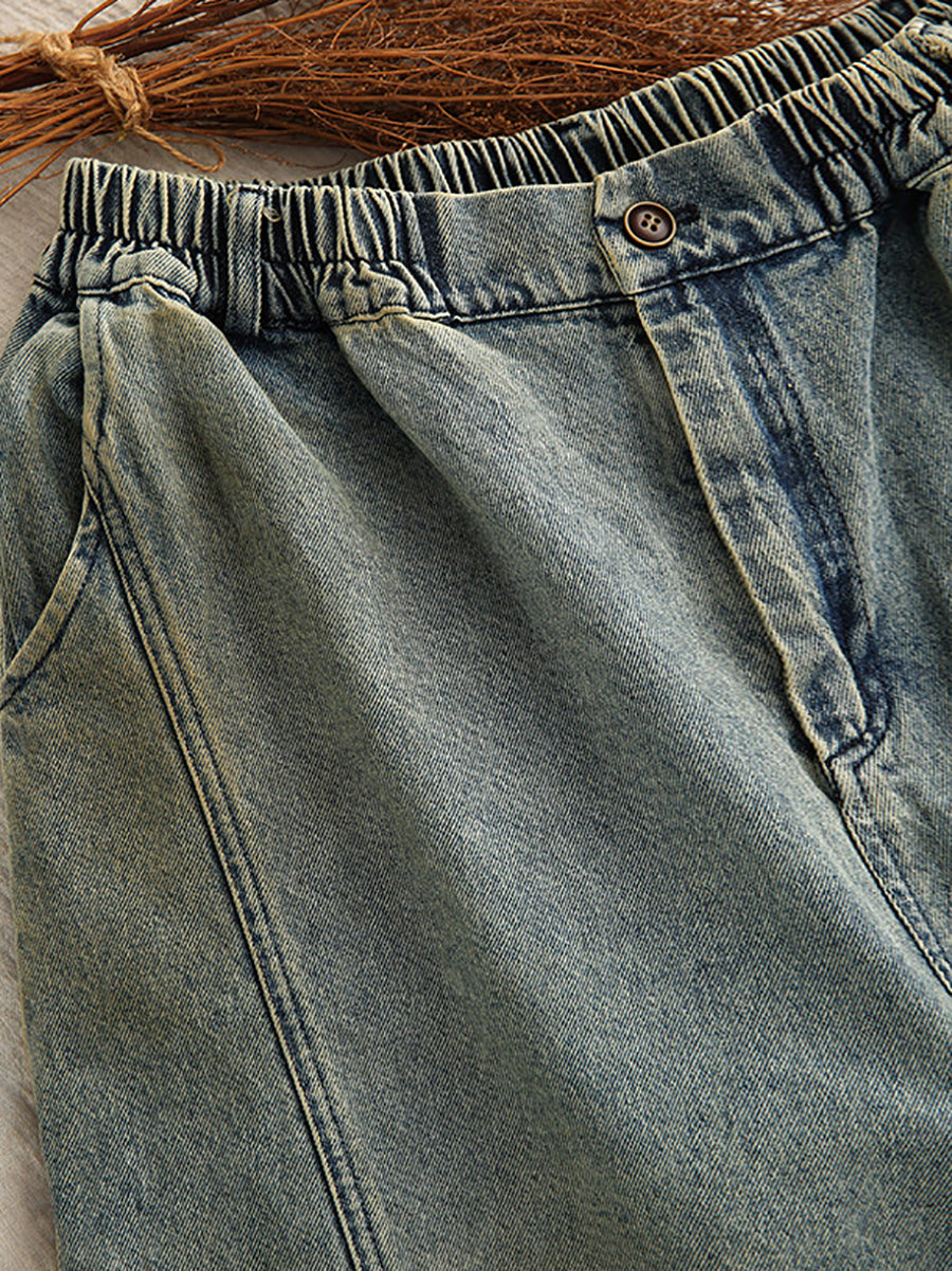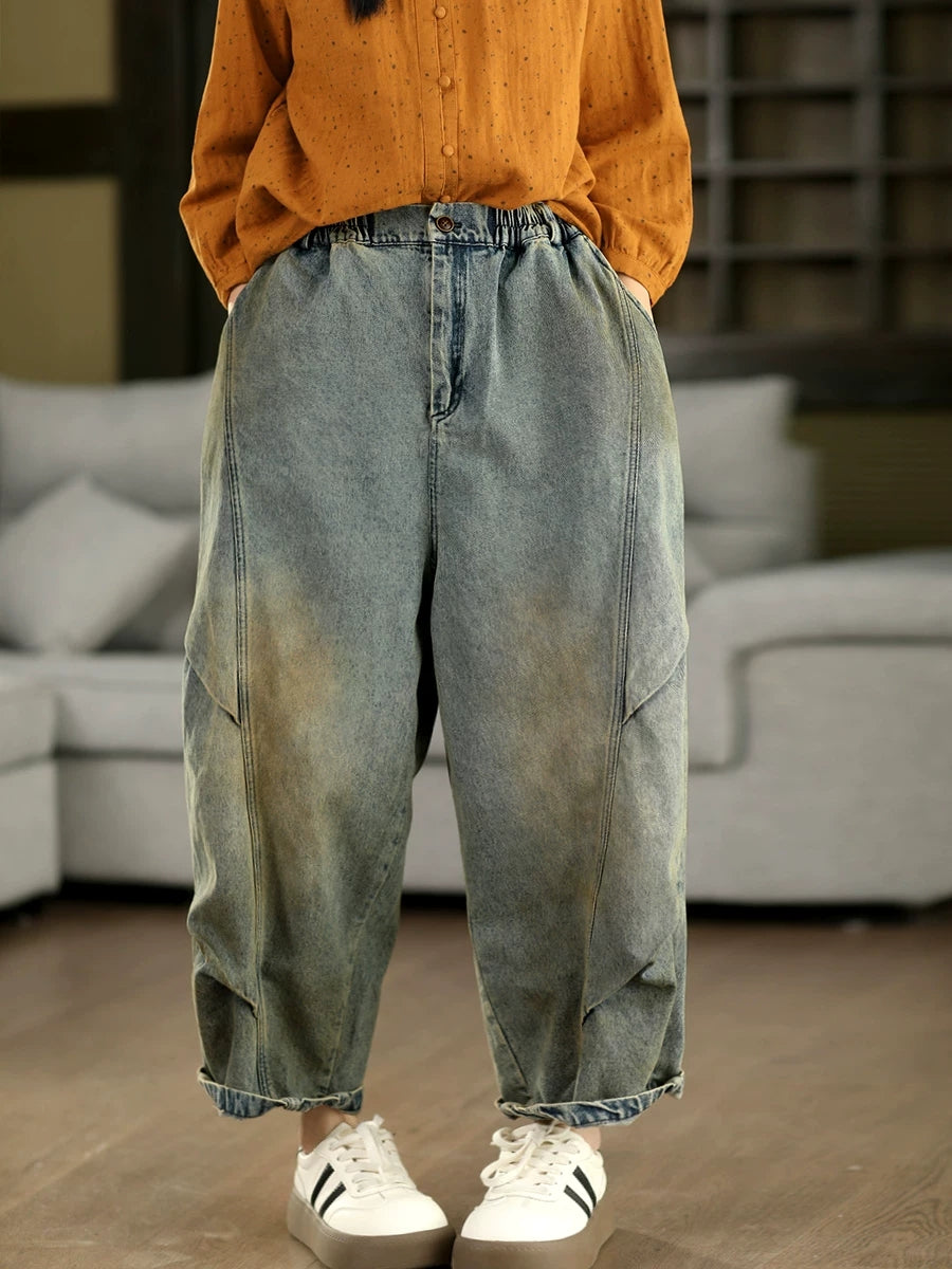 Γυναικείο ανοιξιάτικο vintage τζιν παντελόνι με συρραφές και χαρέμι