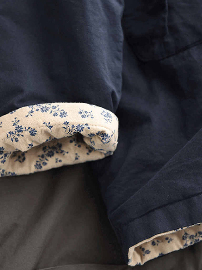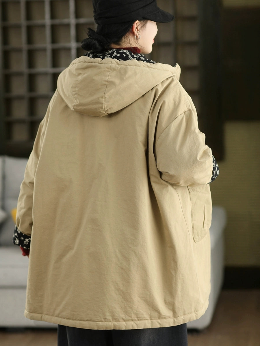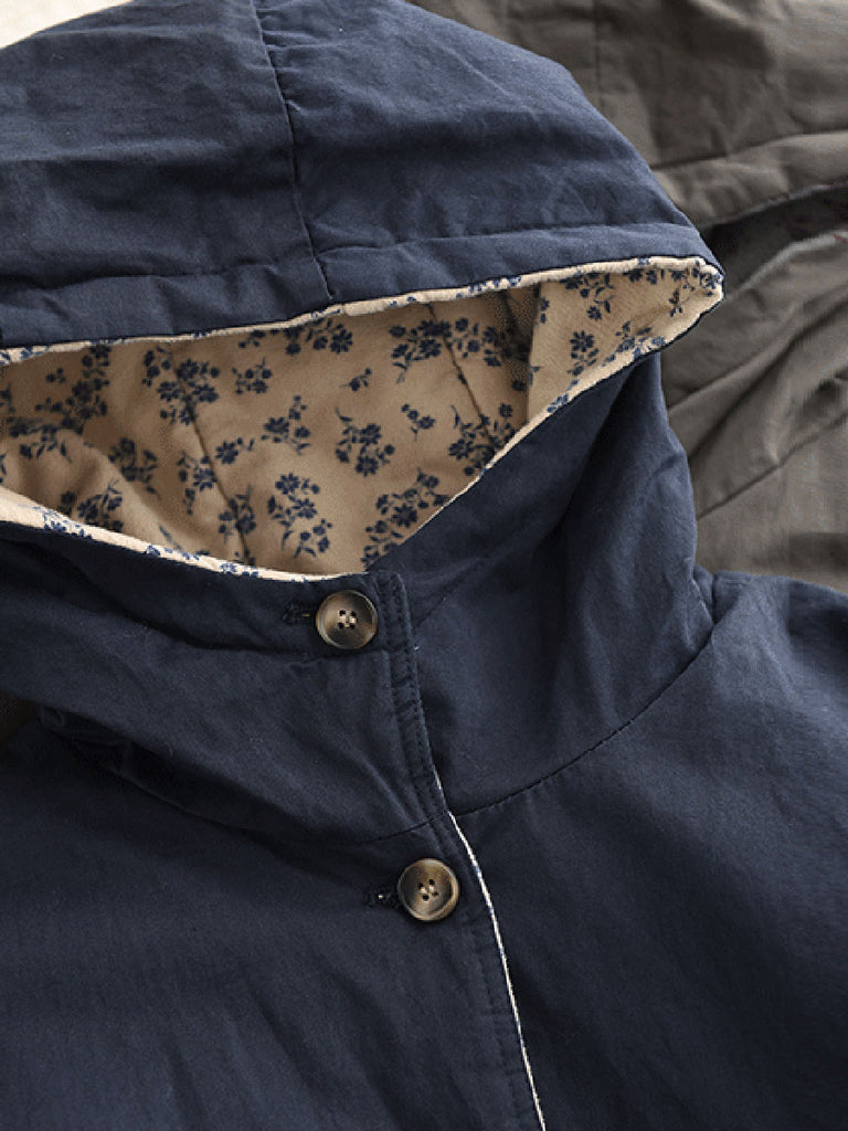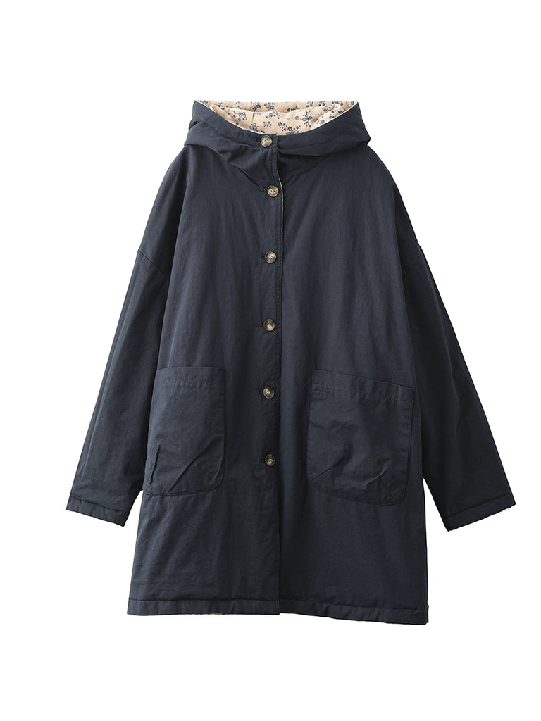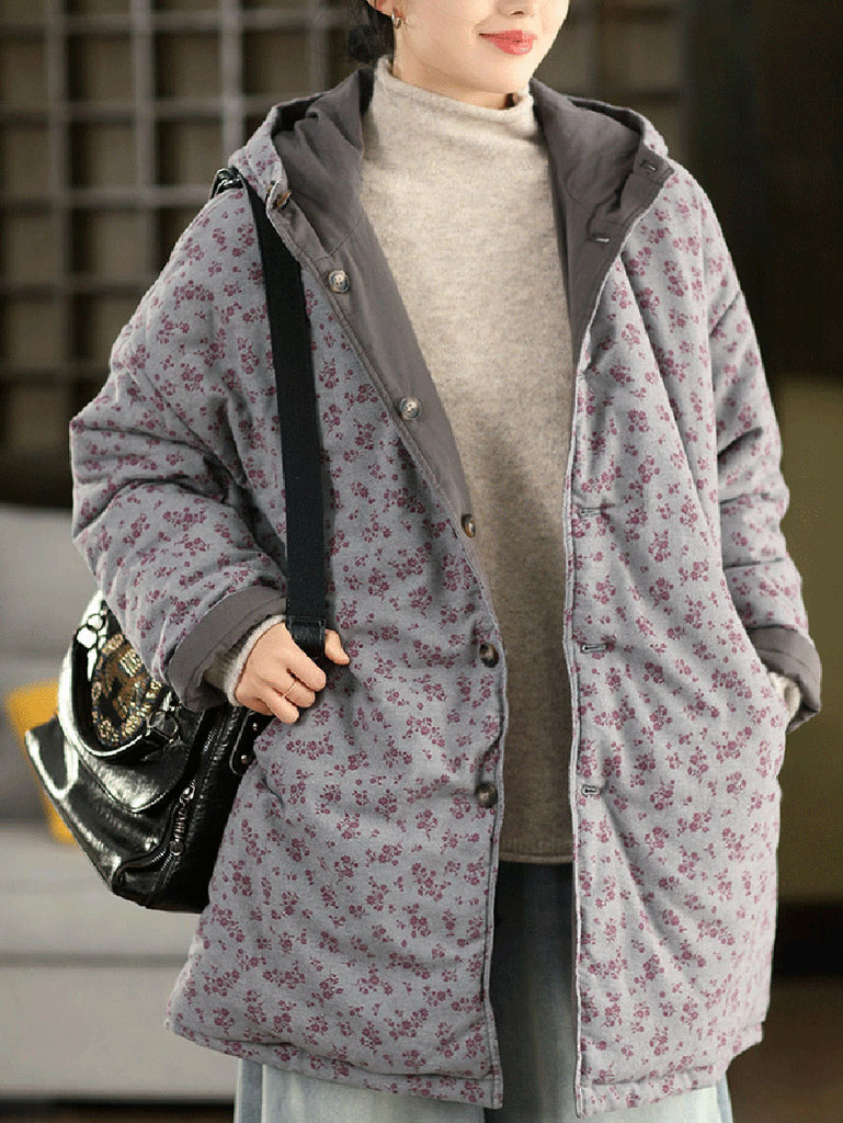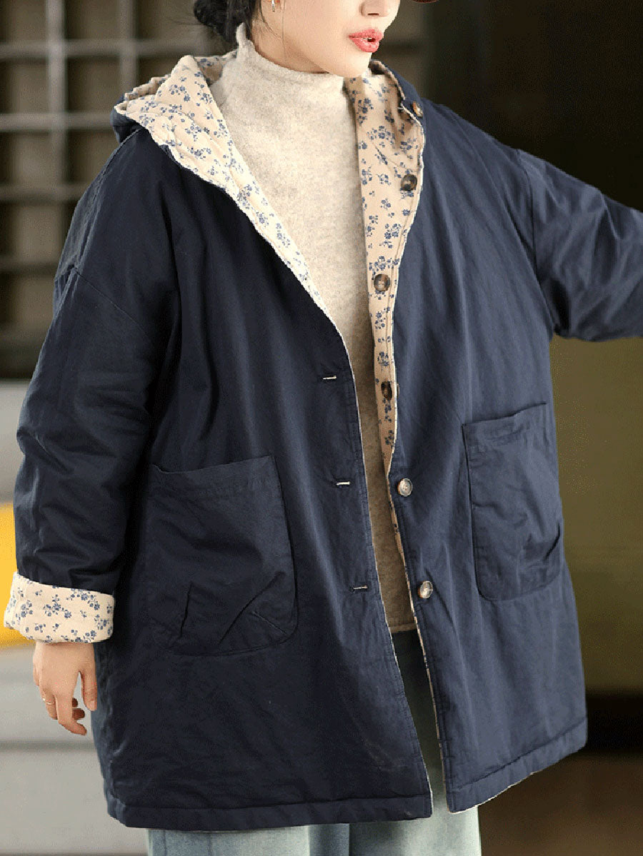 Γυναικείο Χειμερινό Παλτό με Κουκούλα, Φλοράλ, 100% Βαμβάκι, Δύο Όψεων