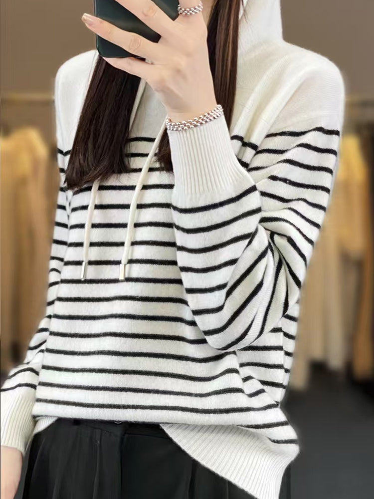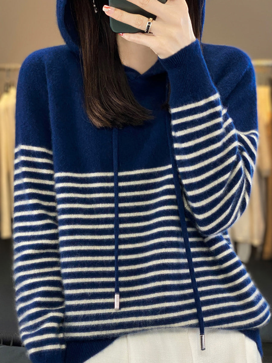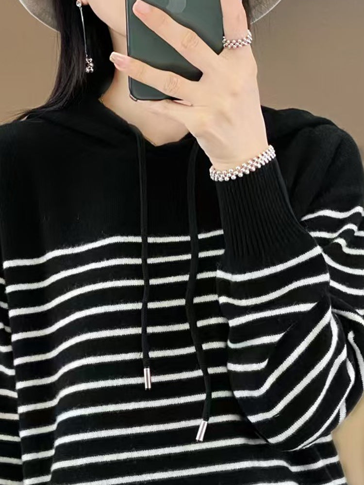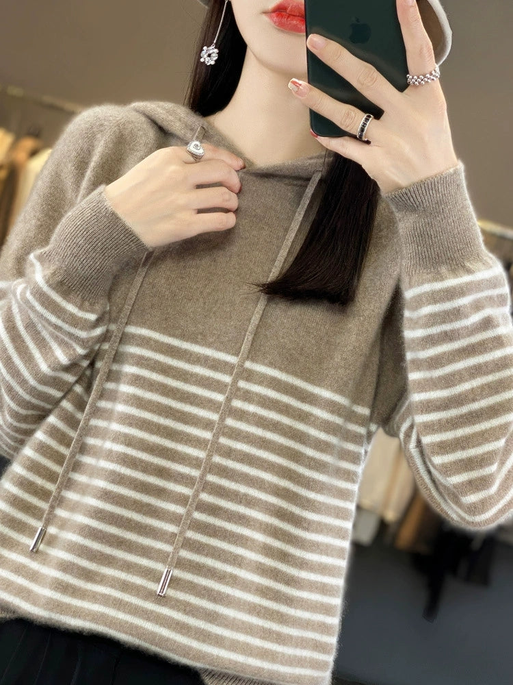 Γυναικείο Χειμερινό Πουλόβερ με Κουκούλα και Ρίγες