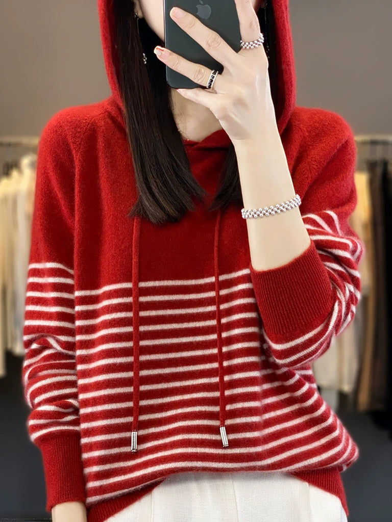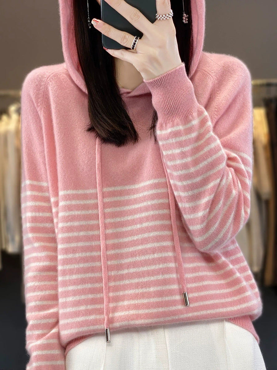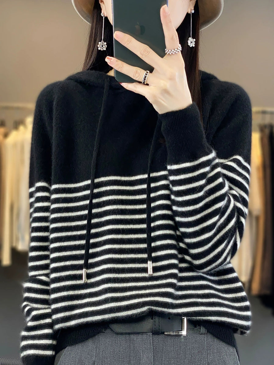 Γυναικείο Χειμερινό Πουλόβερ με Κουκούλα και Ρίγες