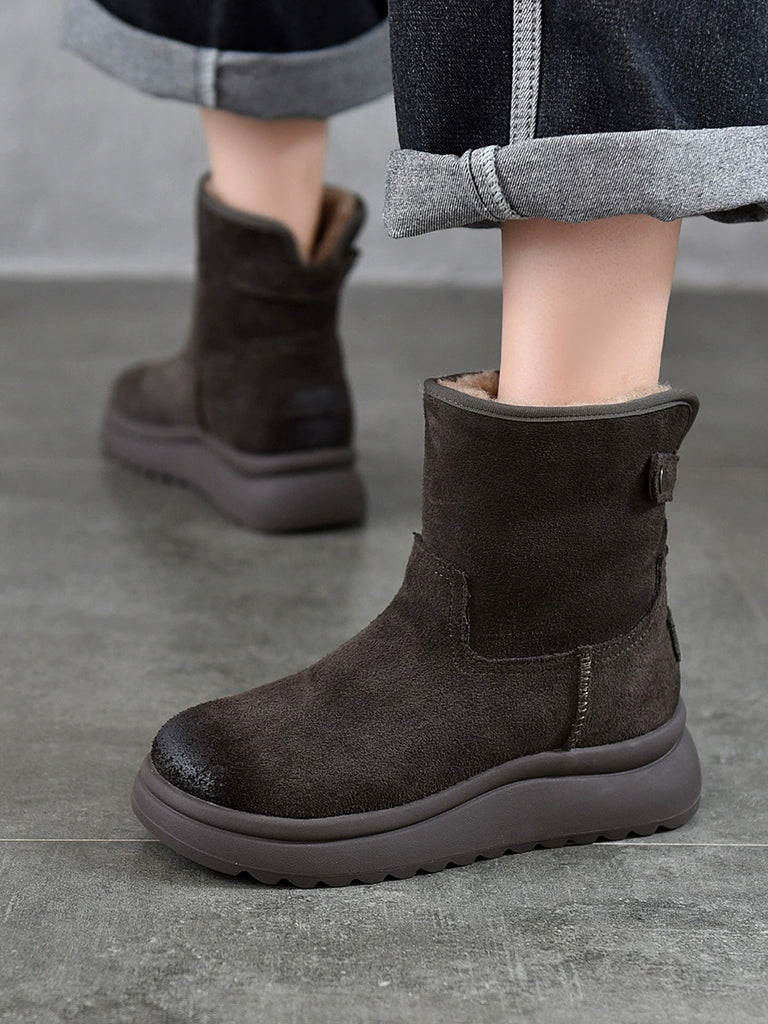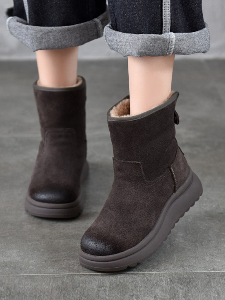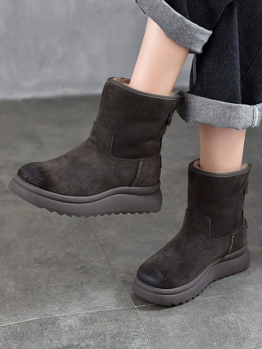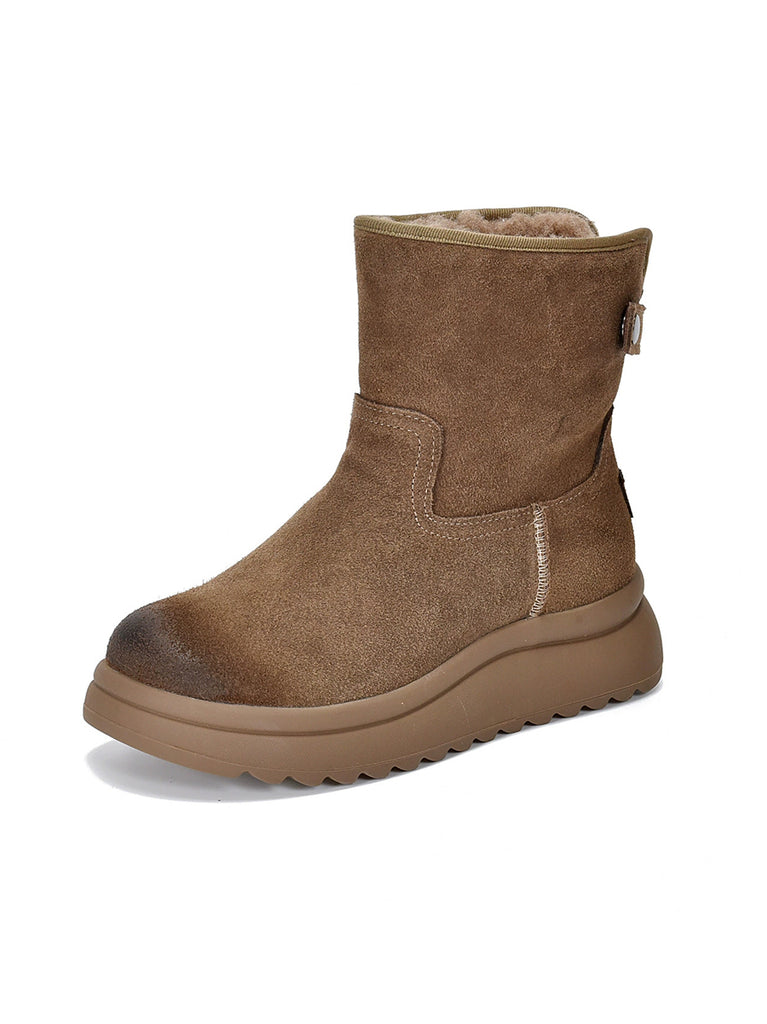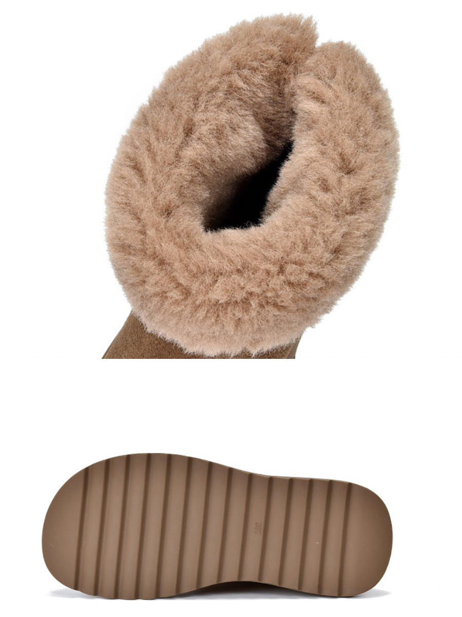 Γυναικείες χειμερινές μπότες από δέρμα με επένδυση από φλις και σουέτ