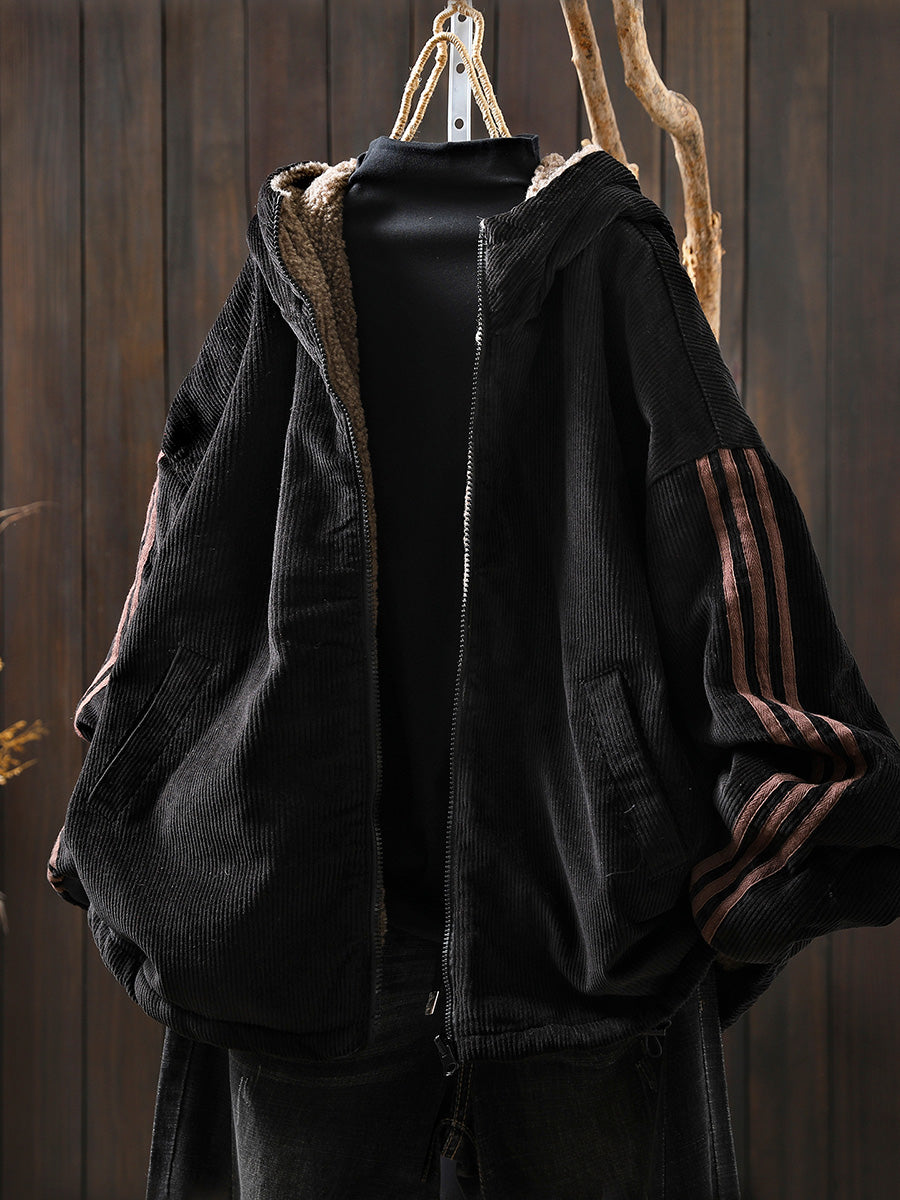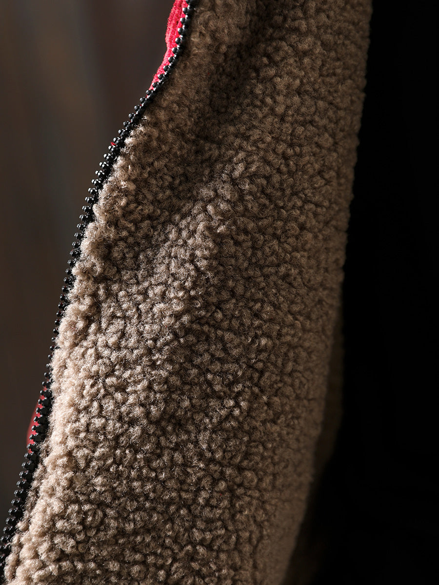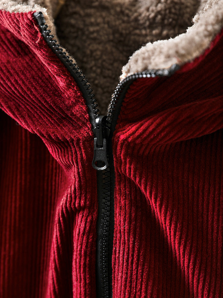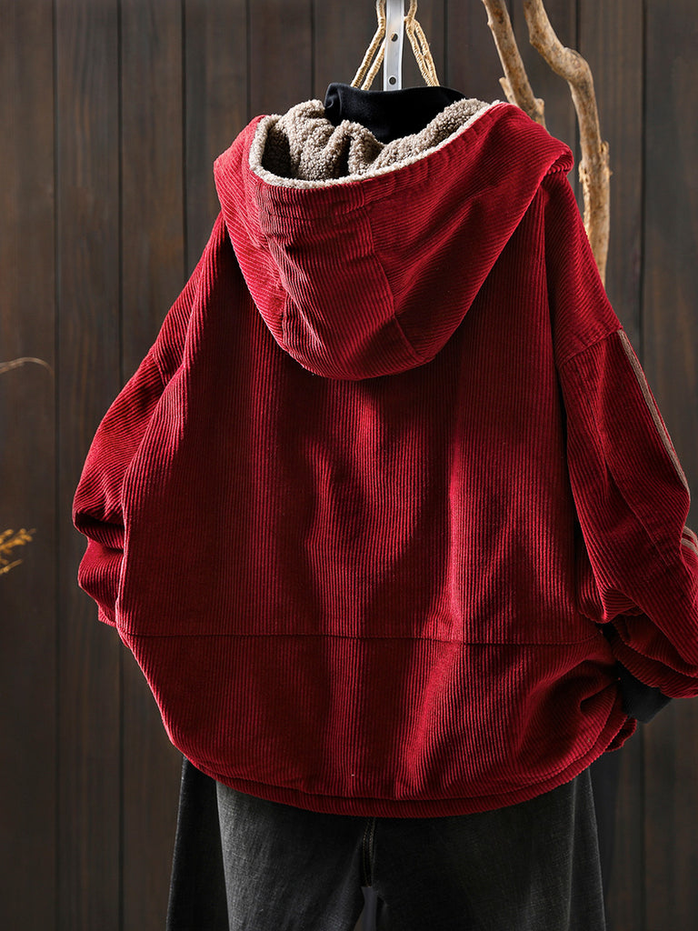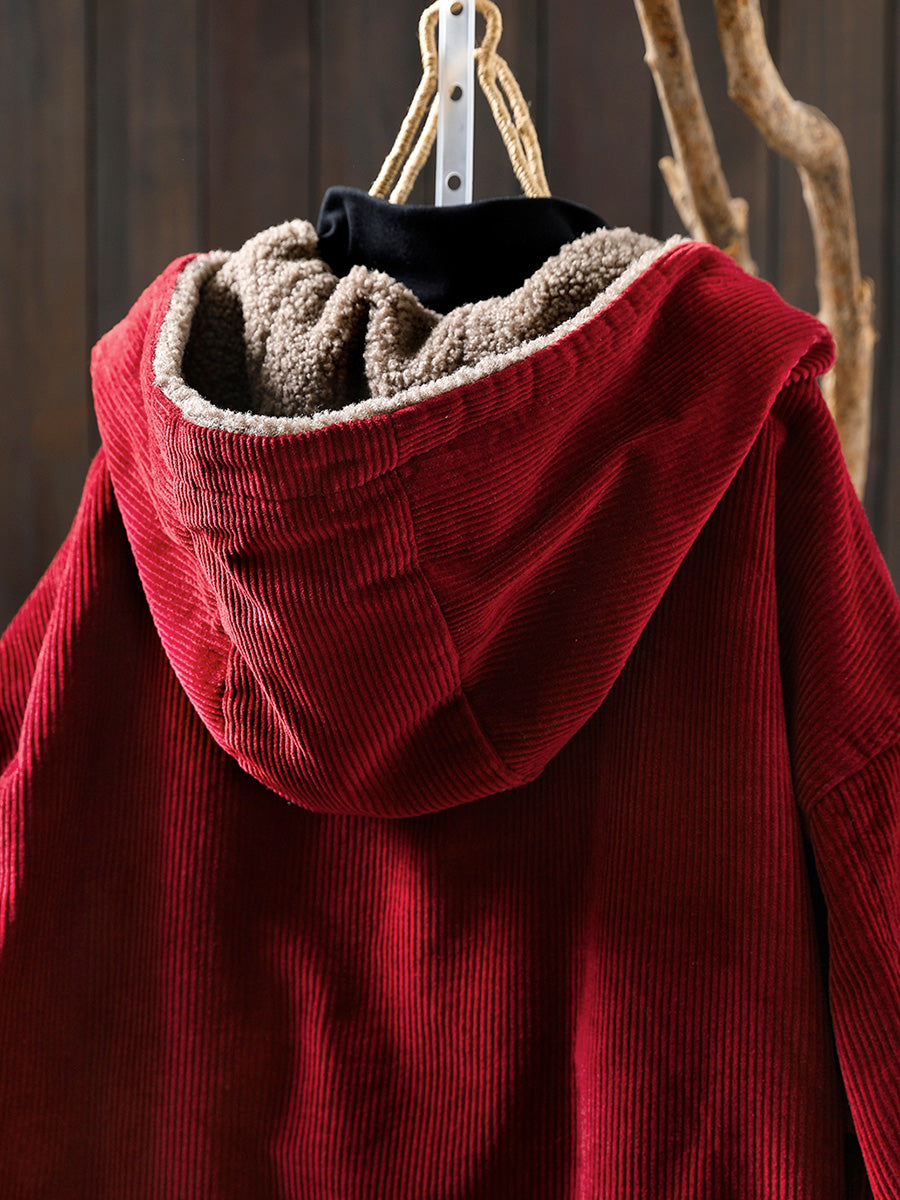 Γυναικείο Φθινοπωρινό Ρετρό Καθαρό Χρώμα Φλις Παλτό με Κουκούλα