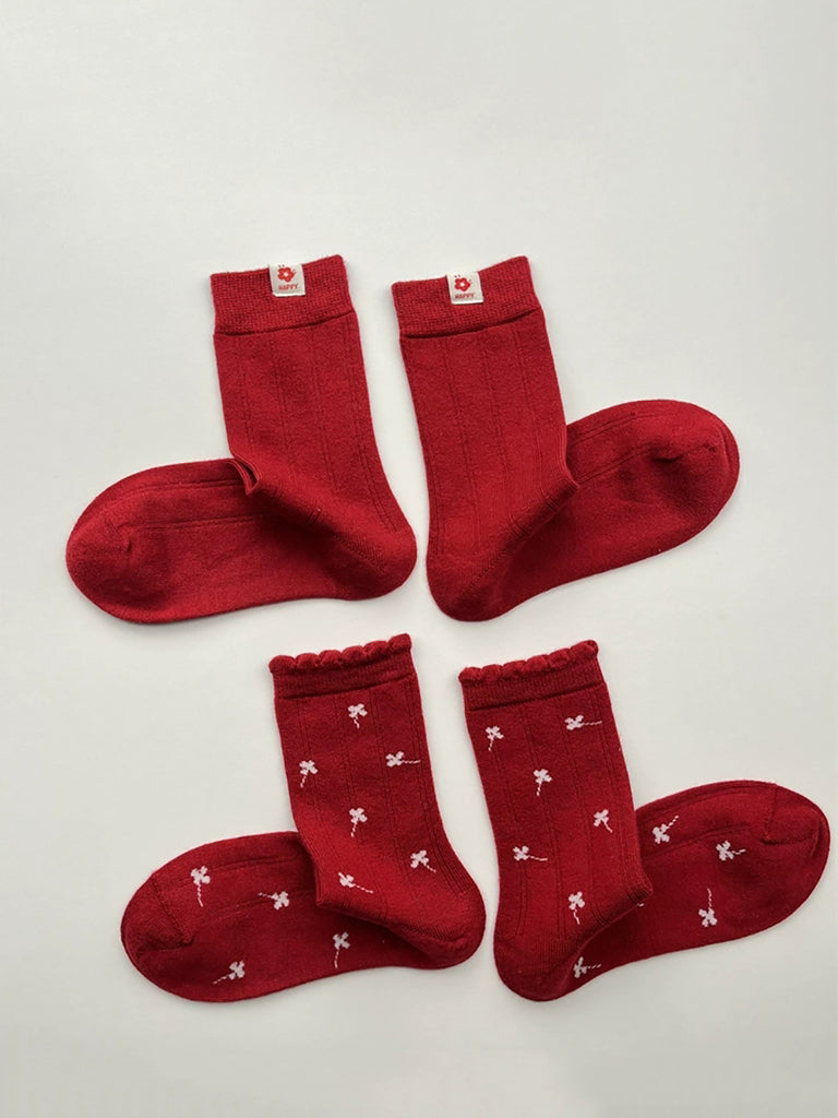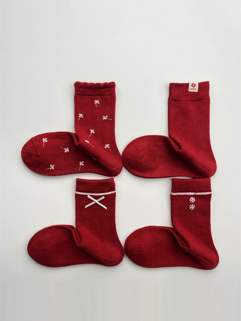 4 ζευγάρια γυναικείες κάλτσες με κόκκινα σχέδια