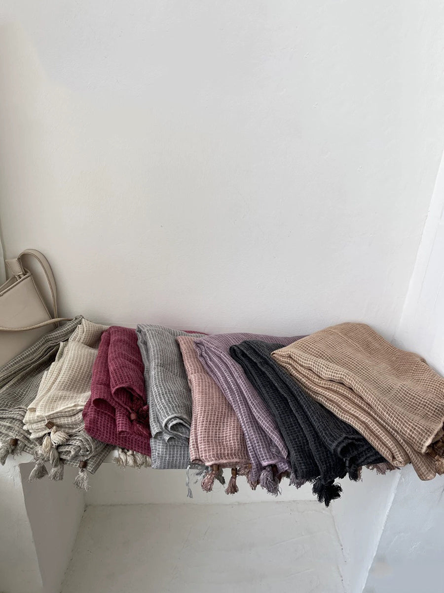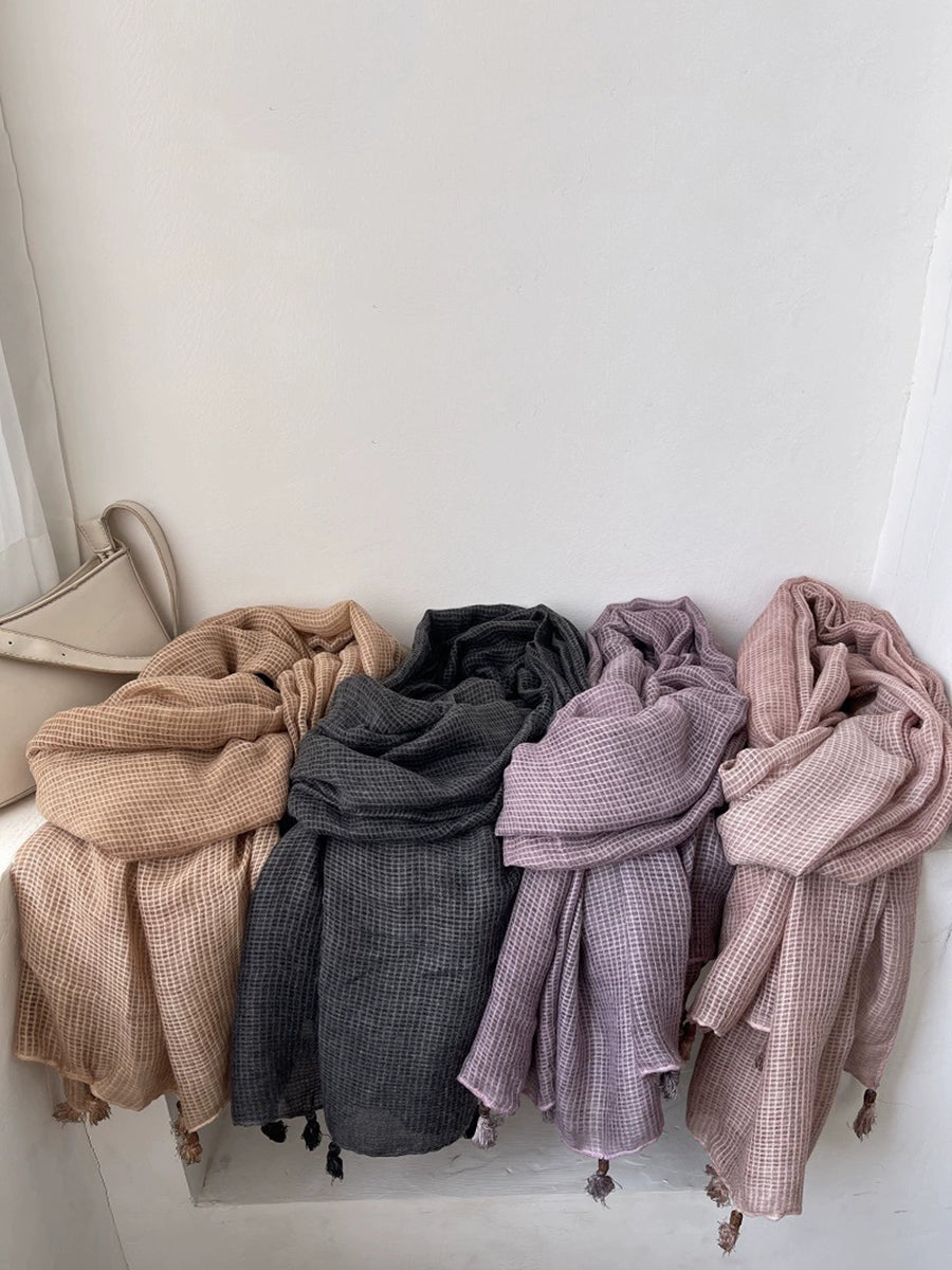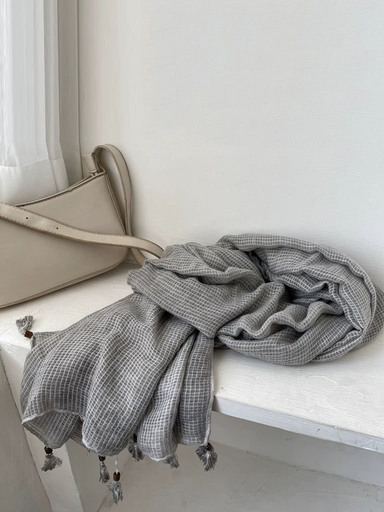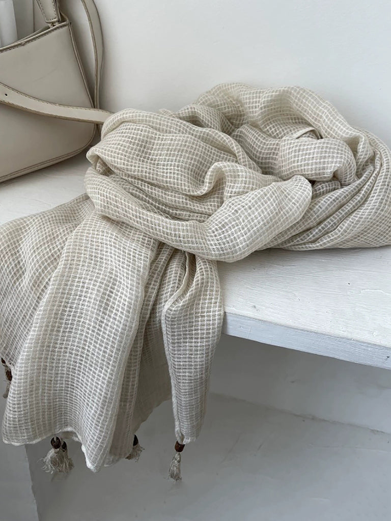 Καλλιτεχνικό κασκόλ με φούντα από βαμβάκι και καρό