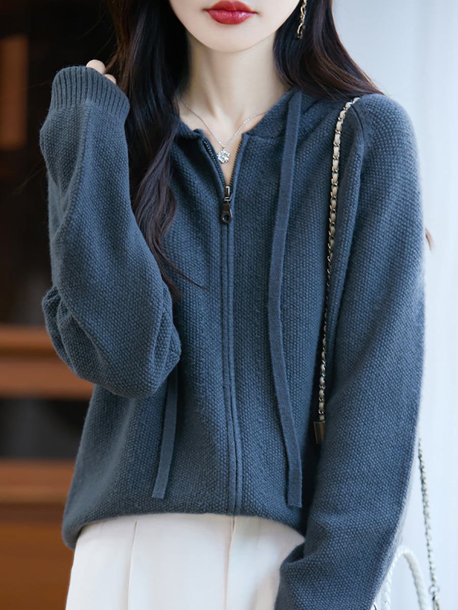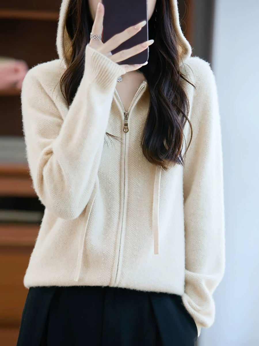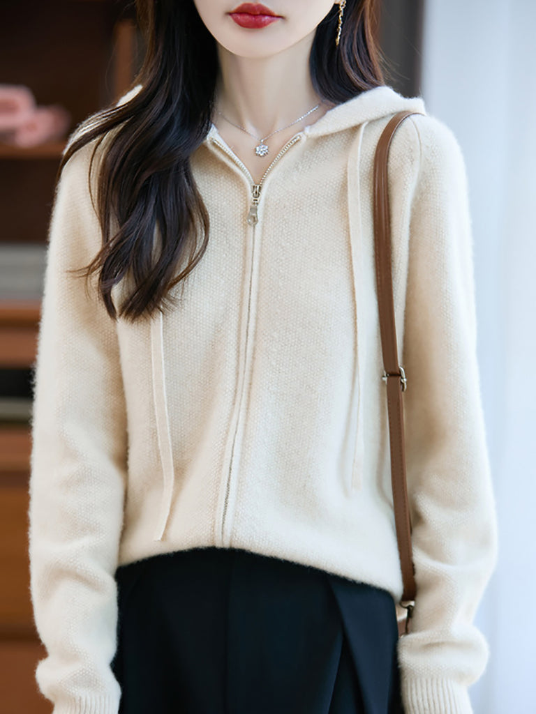 Γυναικείο Φθινοπωρινό Πλεκτό Πουλόβερ με Κουκούλα και Ζακέτα σε Καθαρό Χρώμα