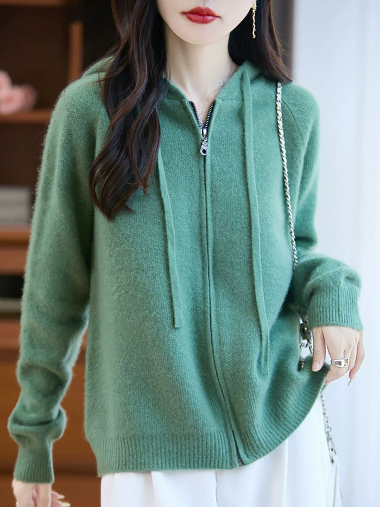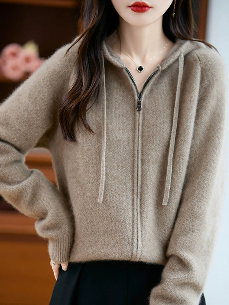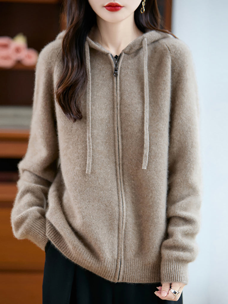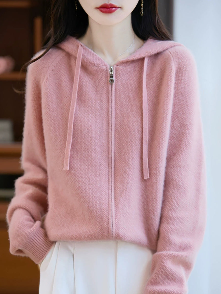 Γυναικείο Φθινοπωρινό Πλεκτό Πουλόβερ με Κουκούλα και Ζακέτα σε Καθαρό Χρώμα