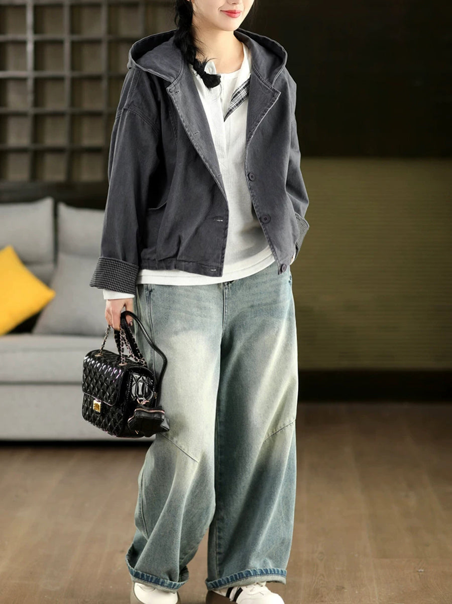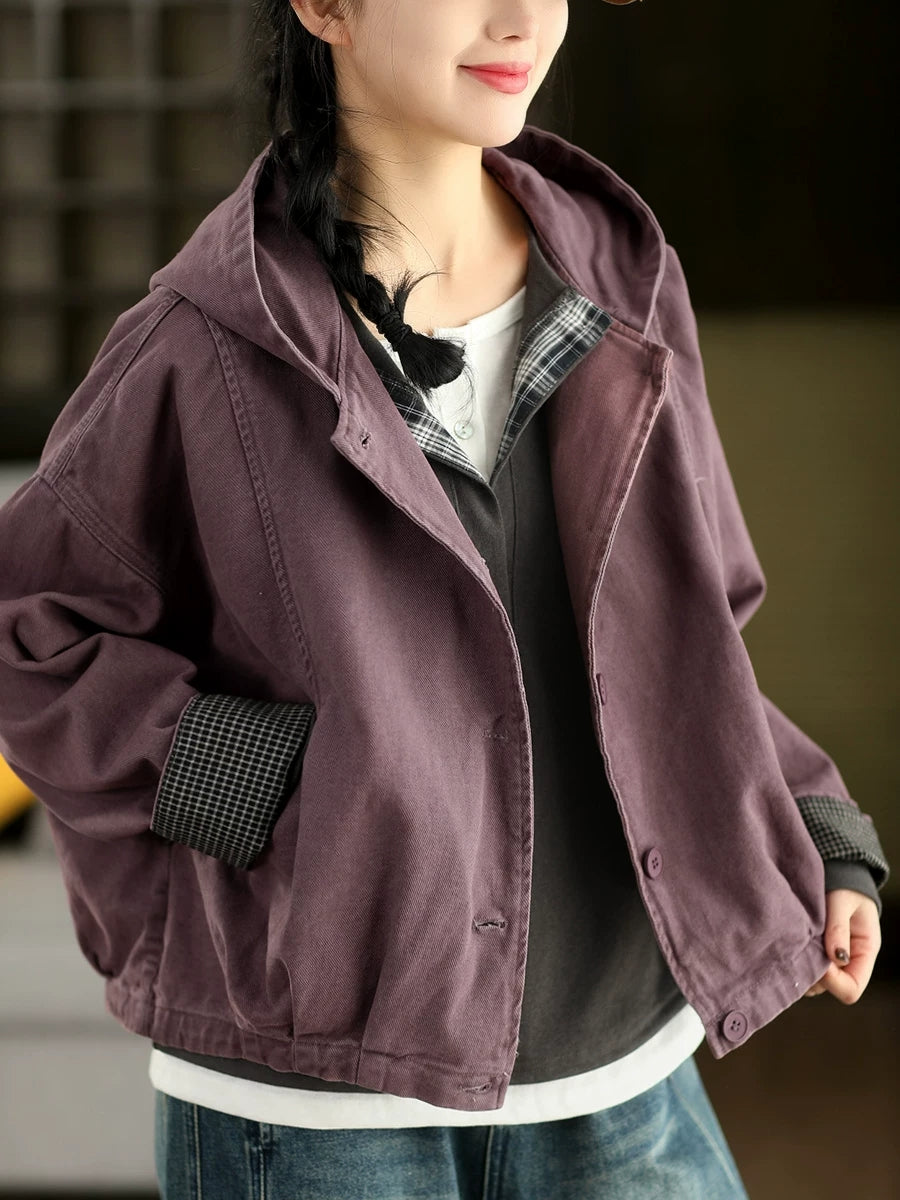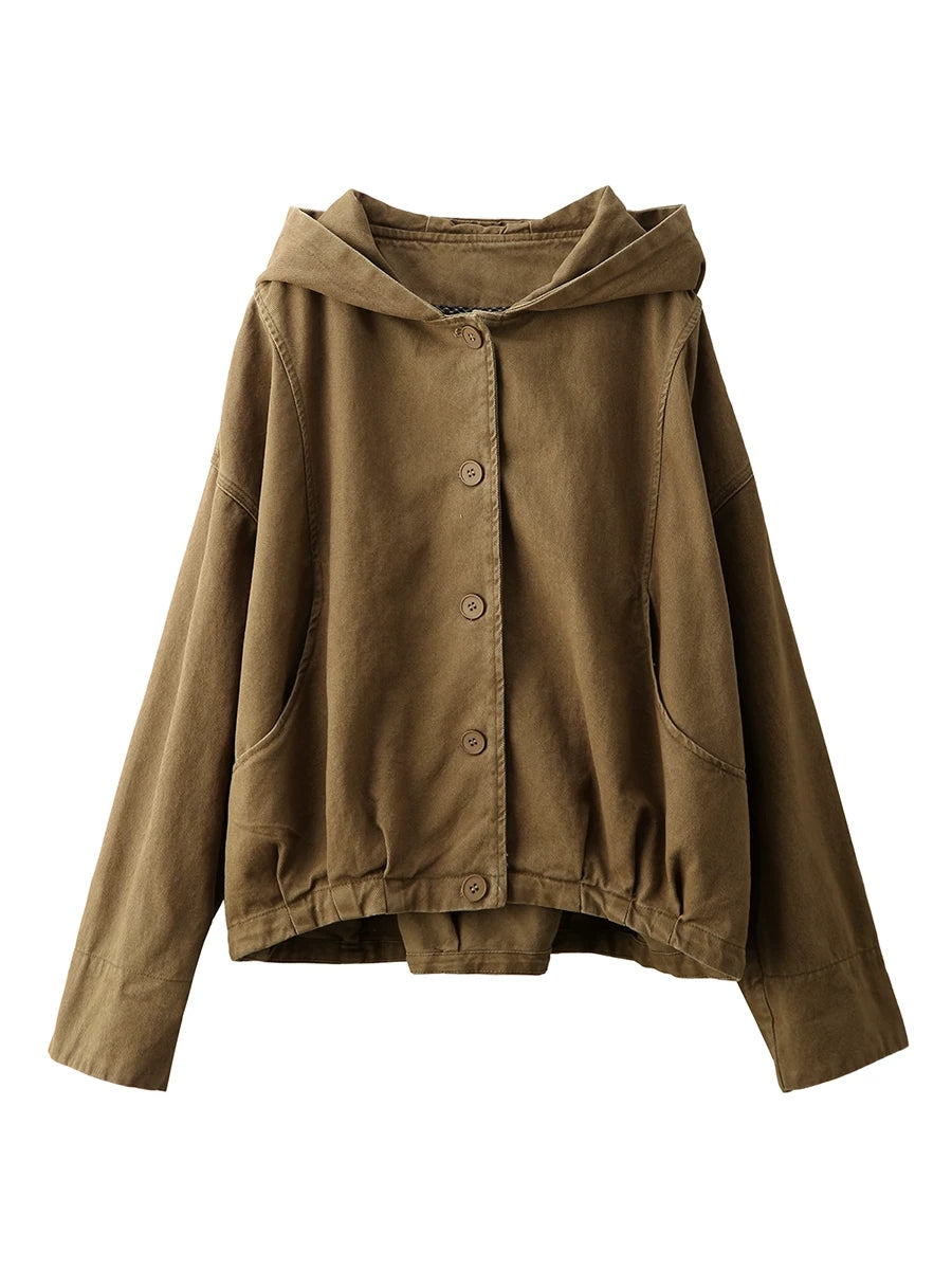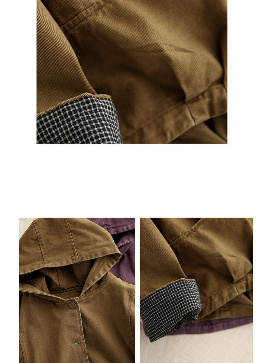 Γυναικείο Ανοιξιάτικο Casual Παλτό με Κουκούλα από 100% Βαμβάκι σε Καθαρό Χρώμα