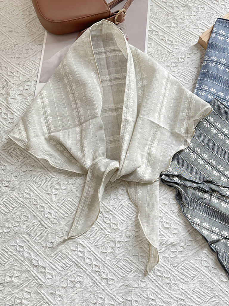 Γυναικείο λινό τριγωνικό κασκόλ Vintage Flower Spliced Κέντημα