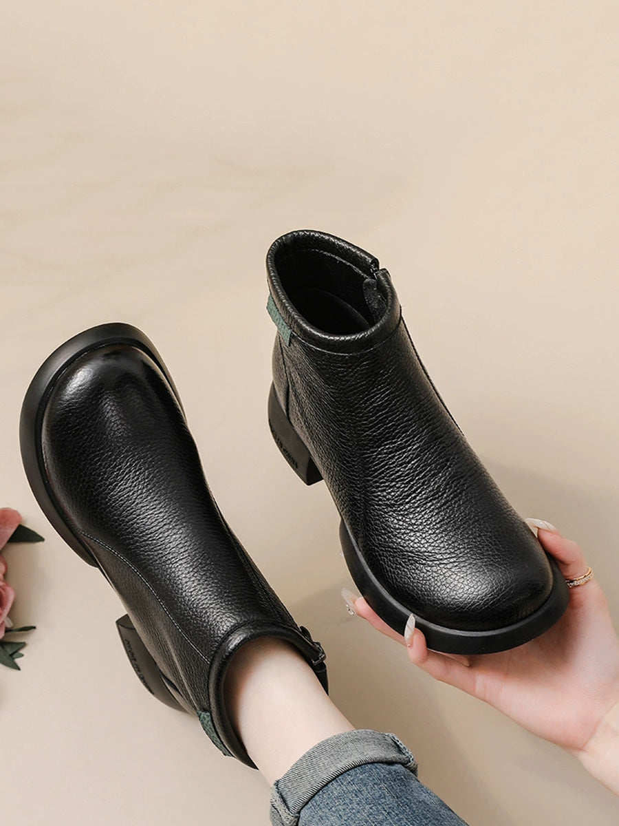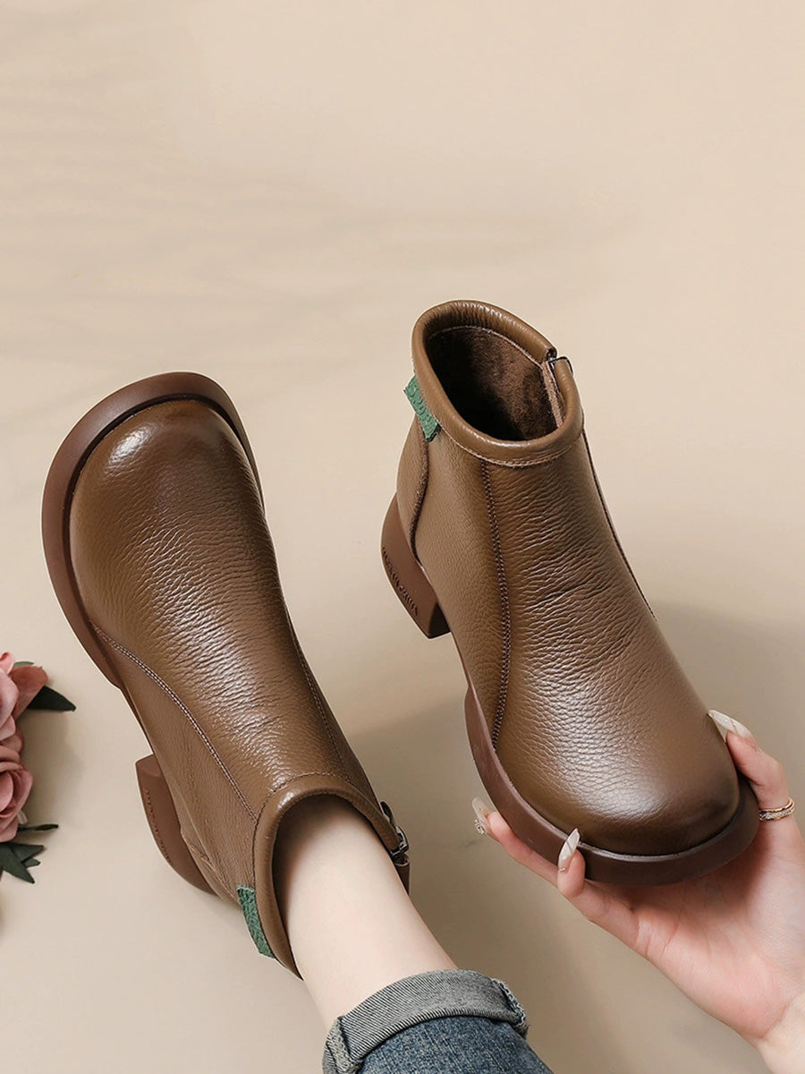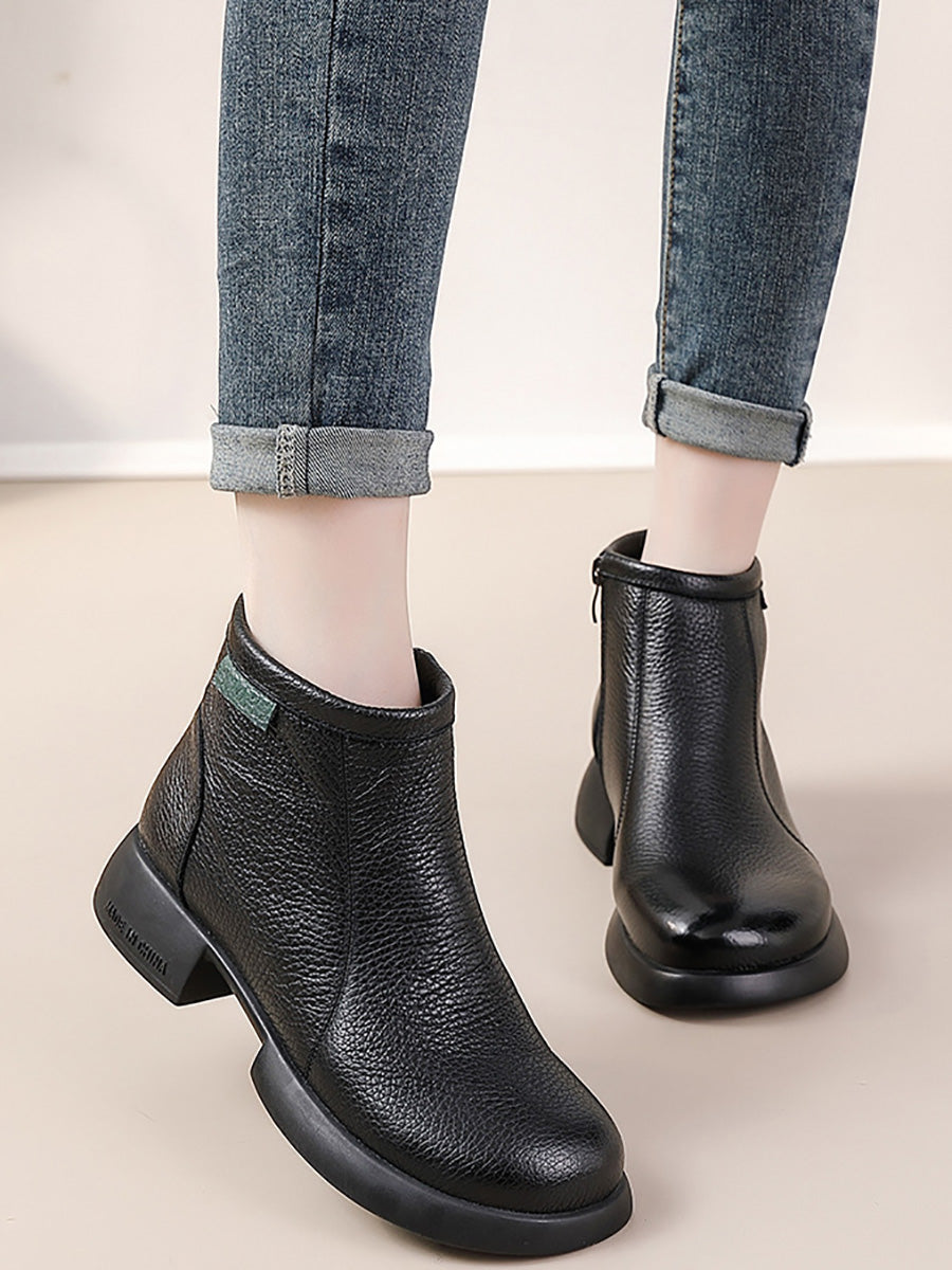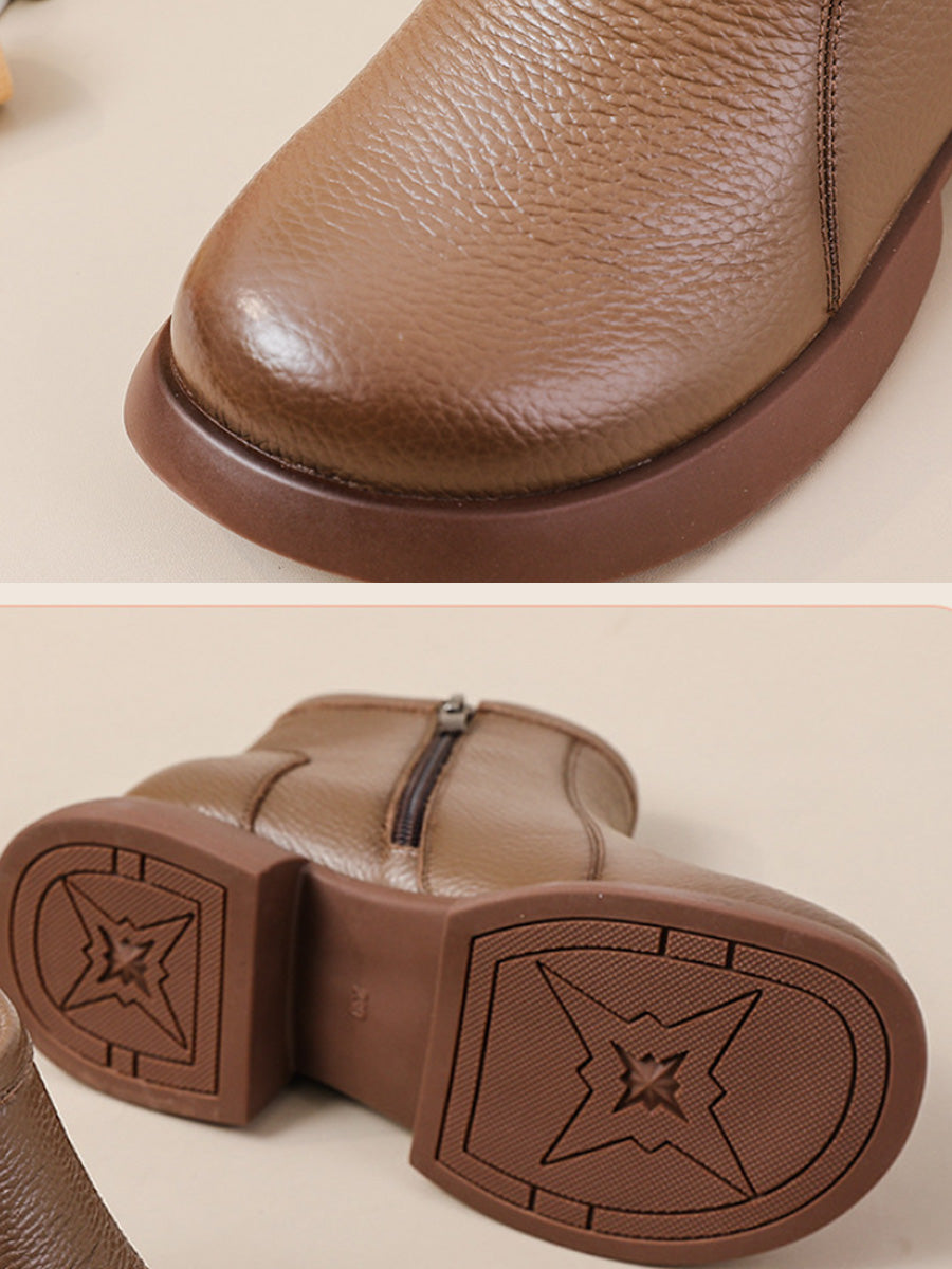 Γυναικείες Χειμερινές Κομψές Μπότες από Γνήσιο Δέρμα με Χαμηλό Τακούνι