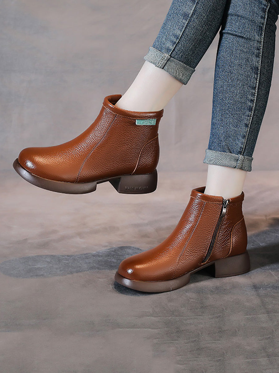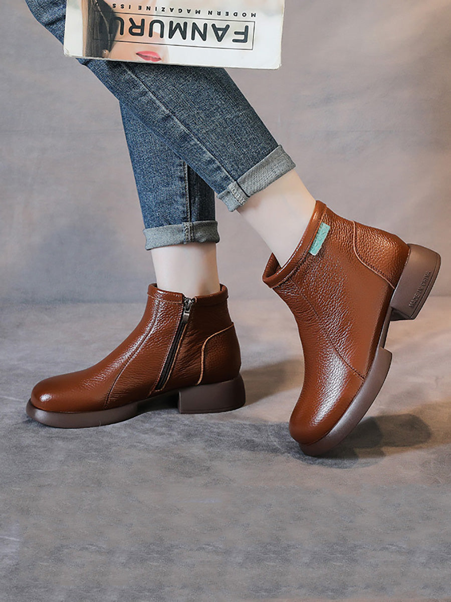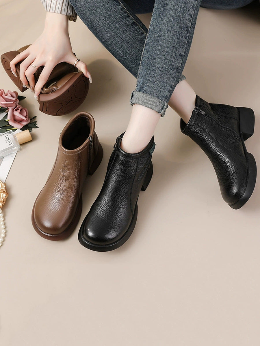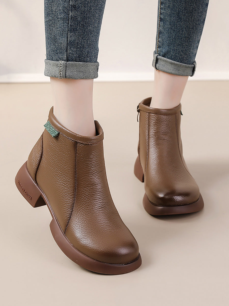 Γυναικείες Χειμερινές Κομψές Μπότες από Γνήσιο Δέρμα με Χαμηλό Τακούνι