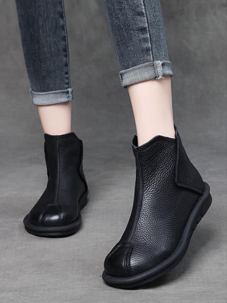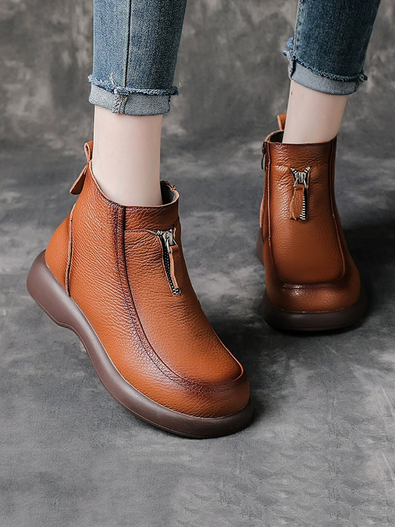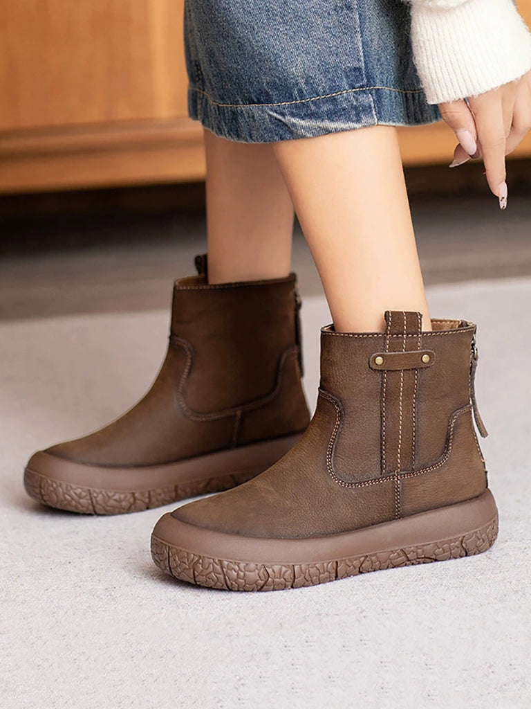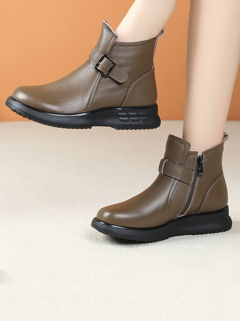 Women Winter Genuine Leather Fleece-lined Ankle Boots