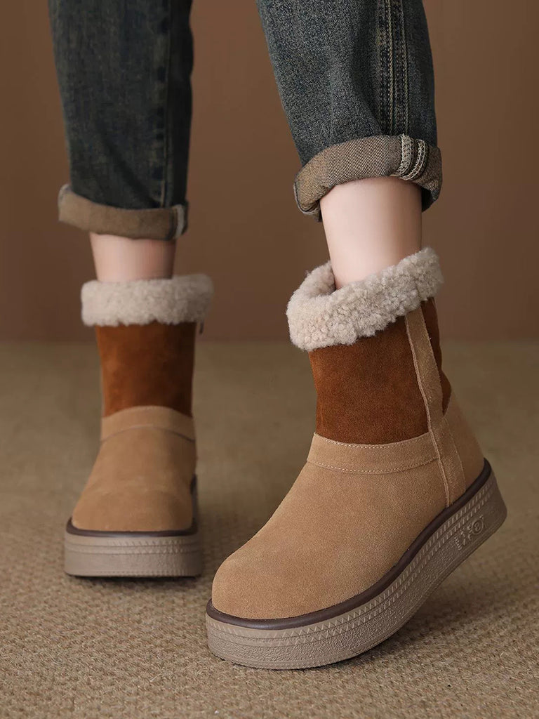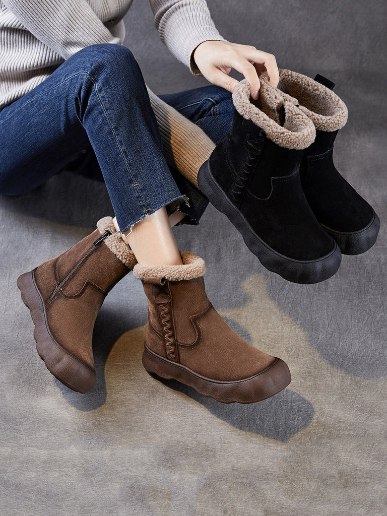 Women Winter Vintage Suded Leather Fleece-lined Boots