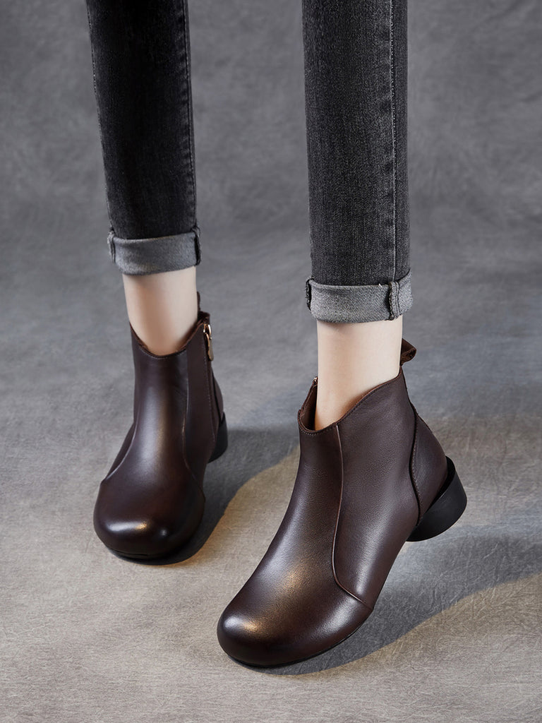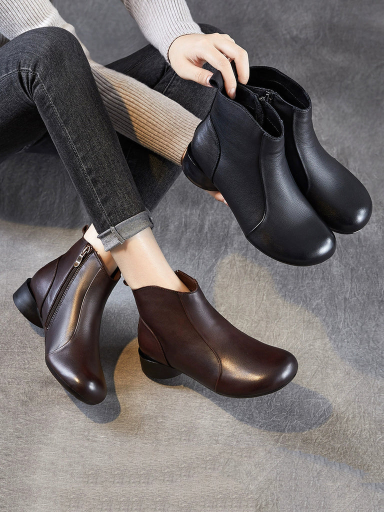 Women Vintage Genuine Leather Spliced Ankle Boots