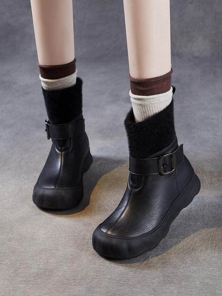 Women Genuine Leather Platform Fleece-lined Ankle Boots