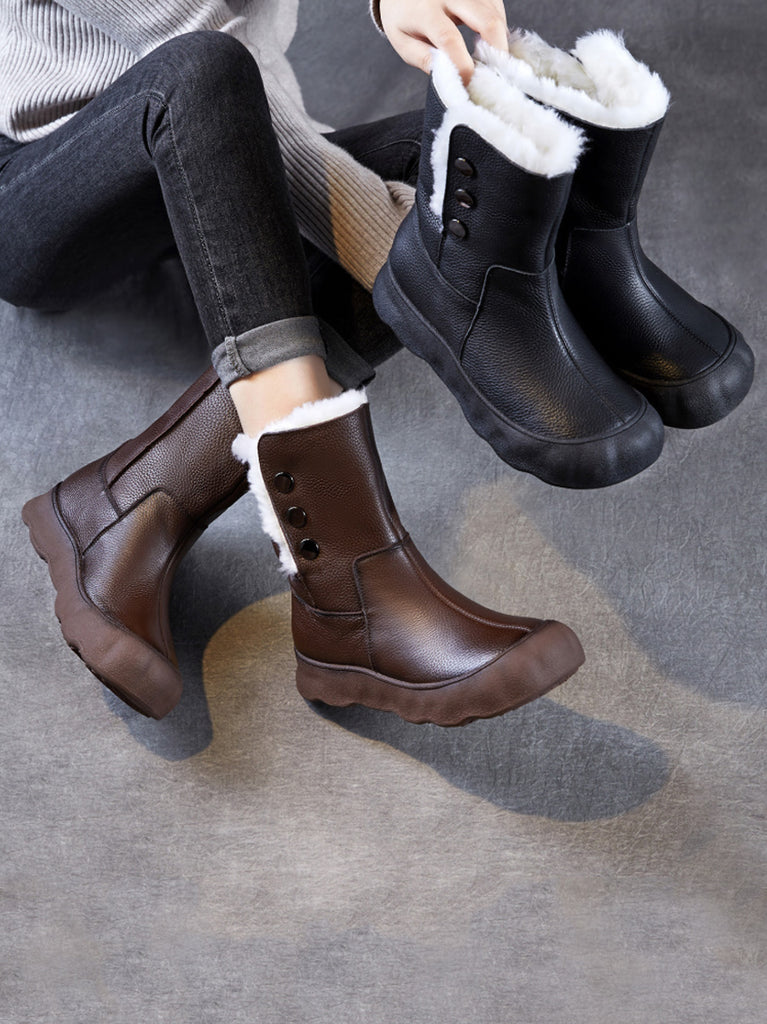 Women Winter Genuine Leather Fleece-lined Martin Boots