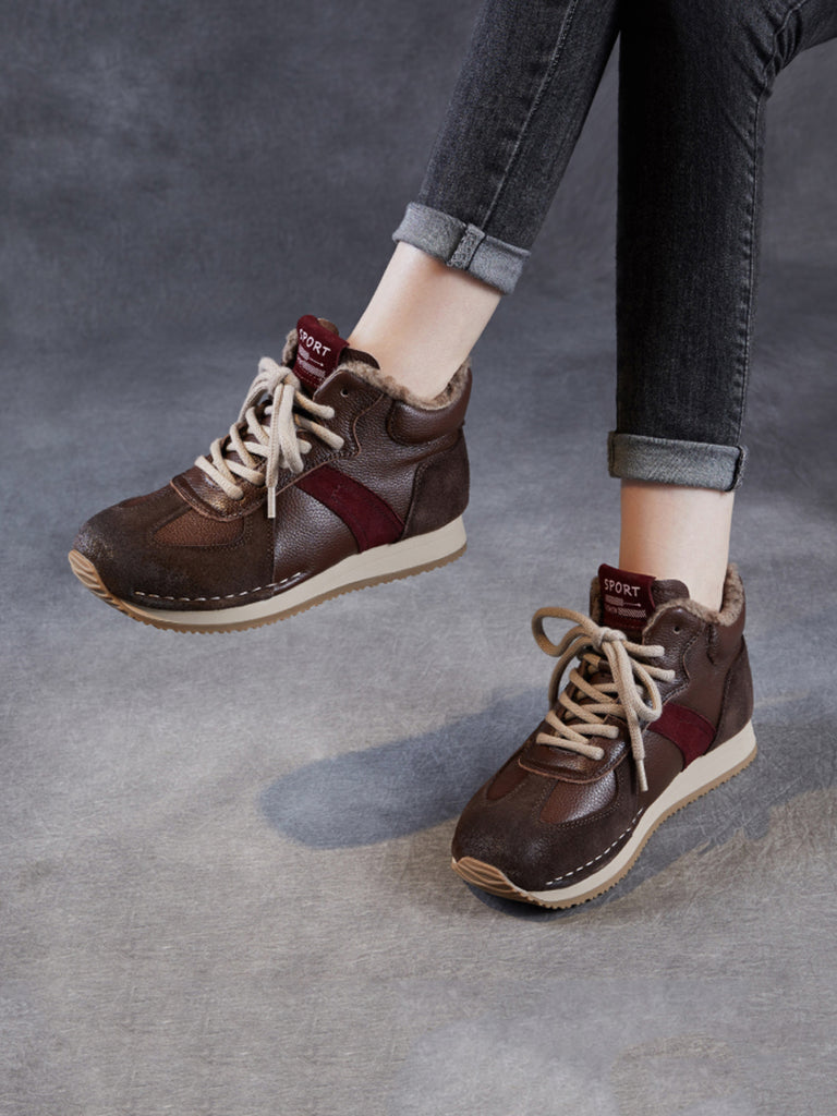 Women Winter Colorblock Leather Fleece-lined Shoes