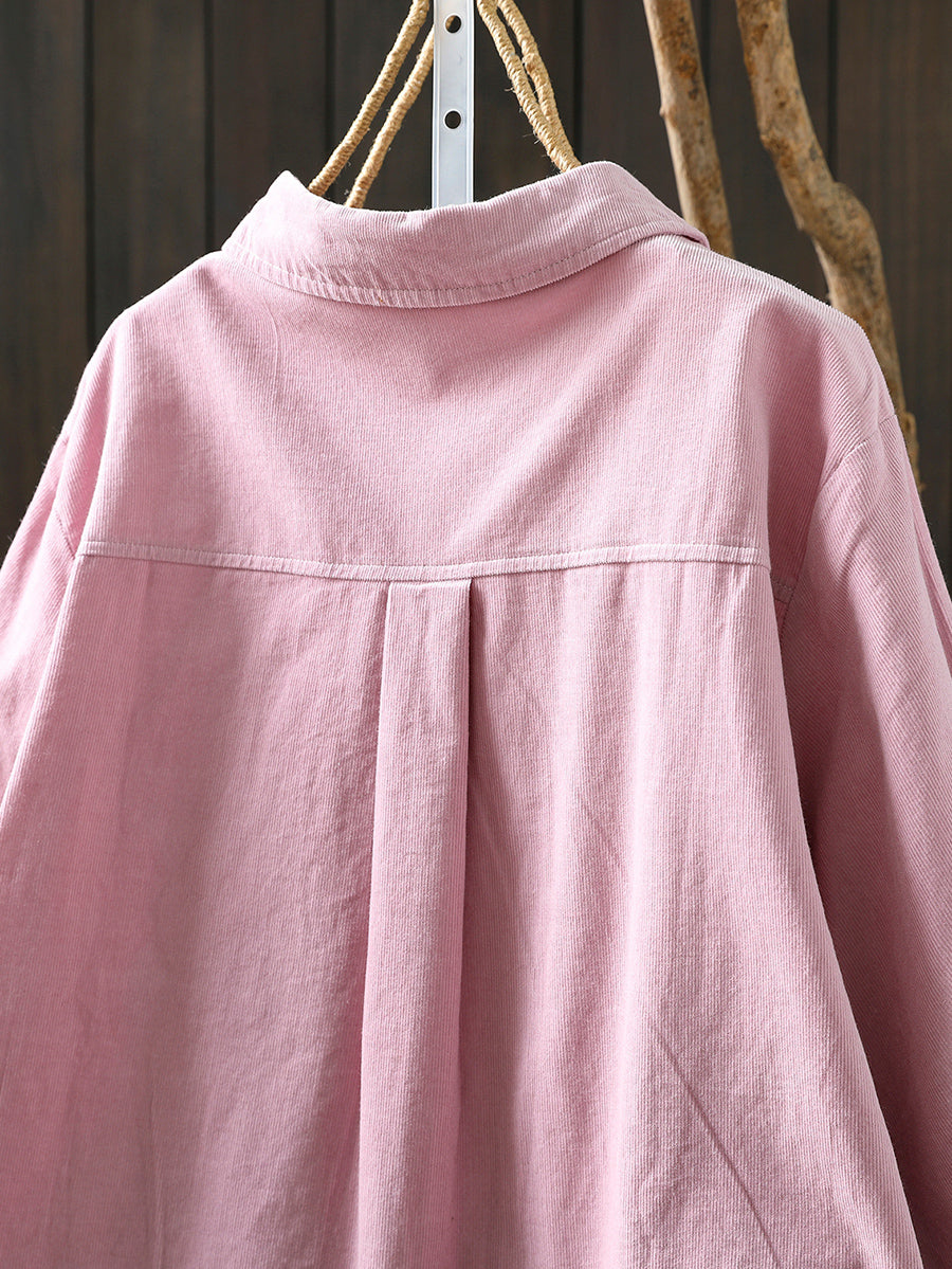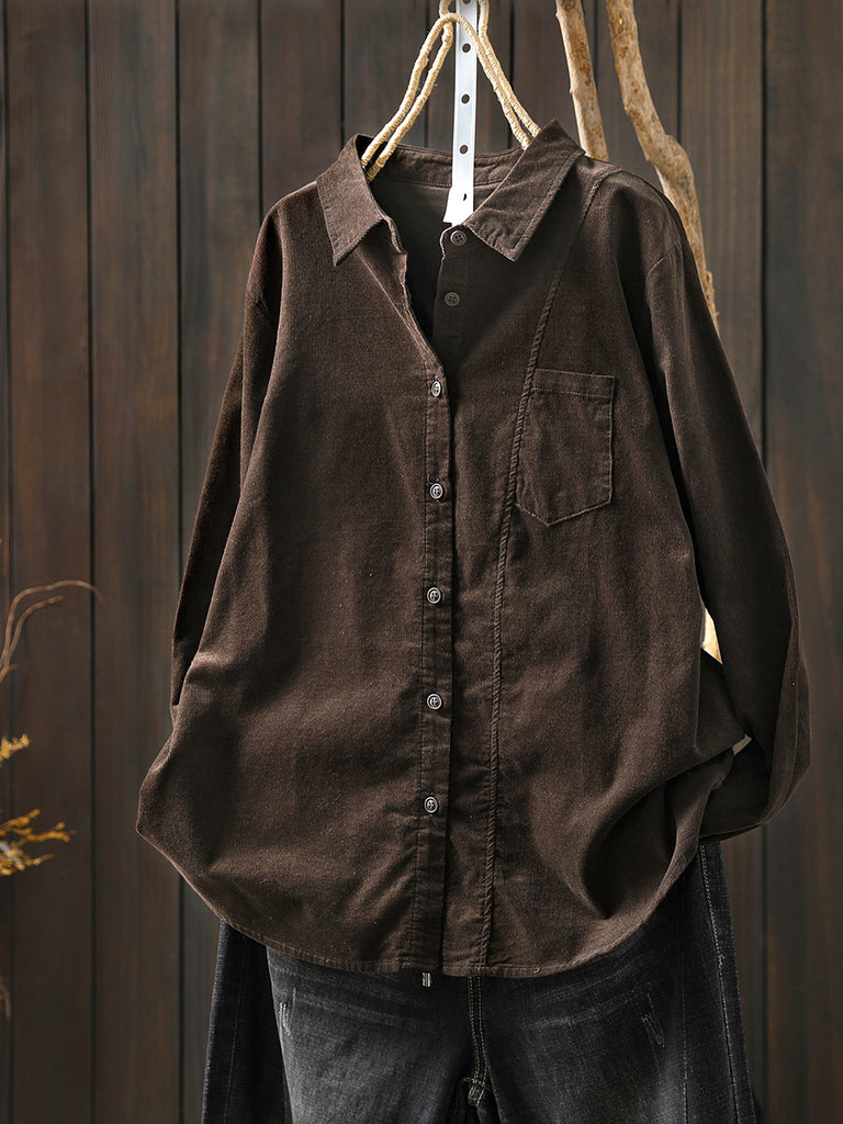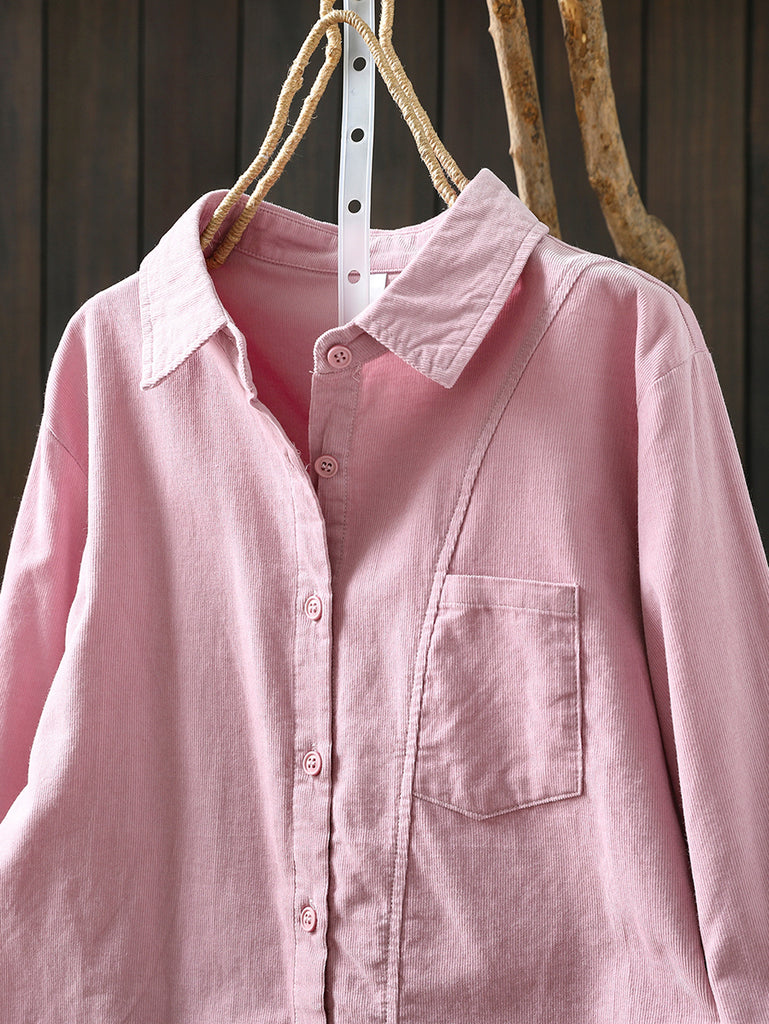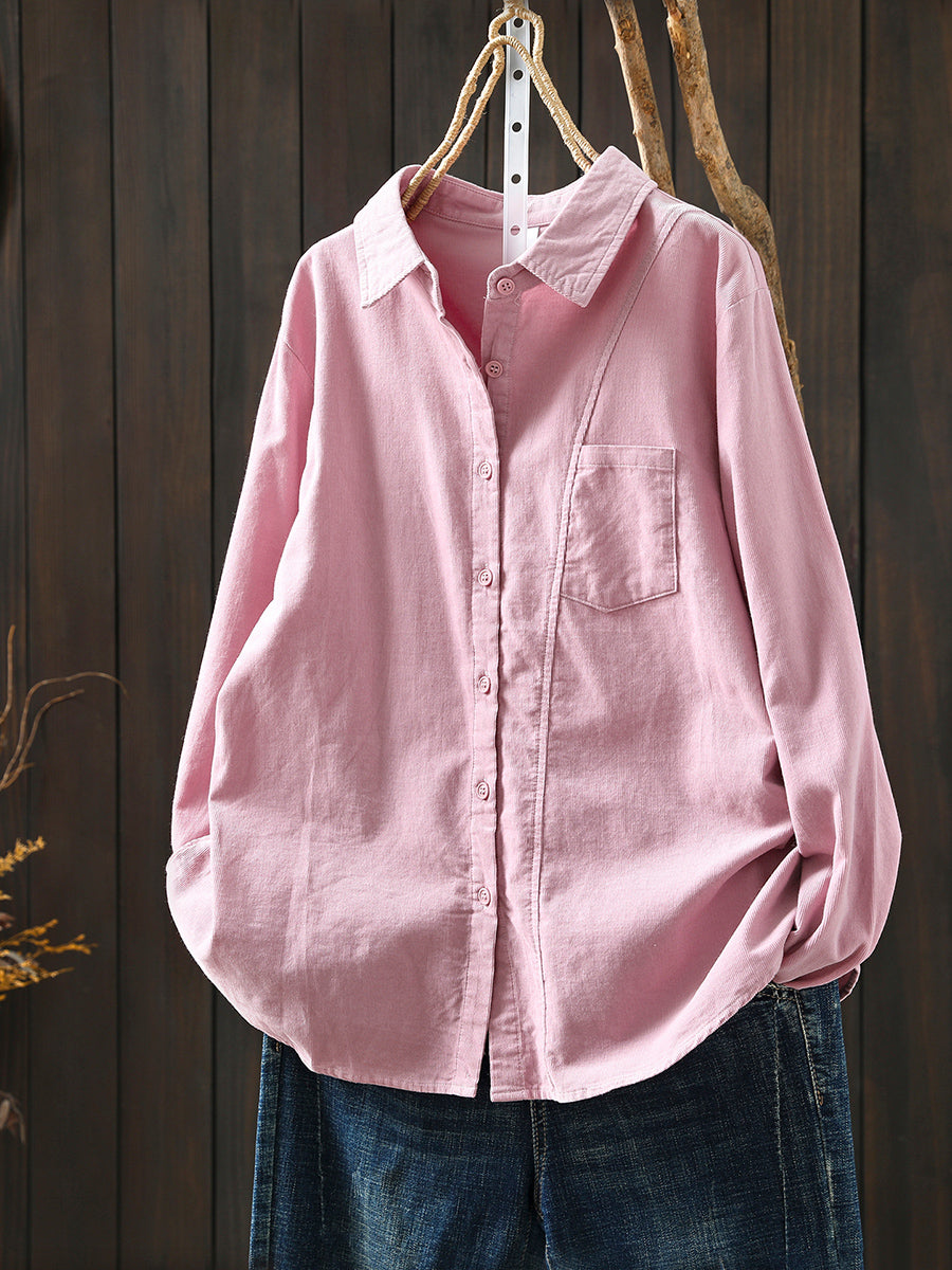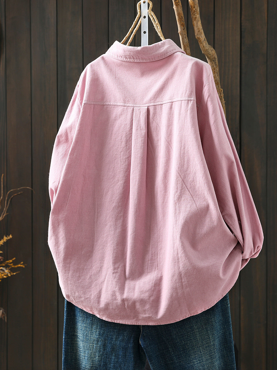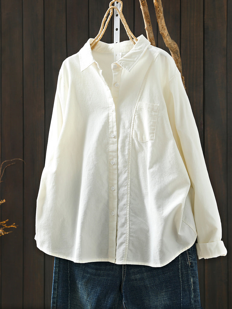 Women Artsy 100%Cotton Pure Color Turn-down Collar Shirt