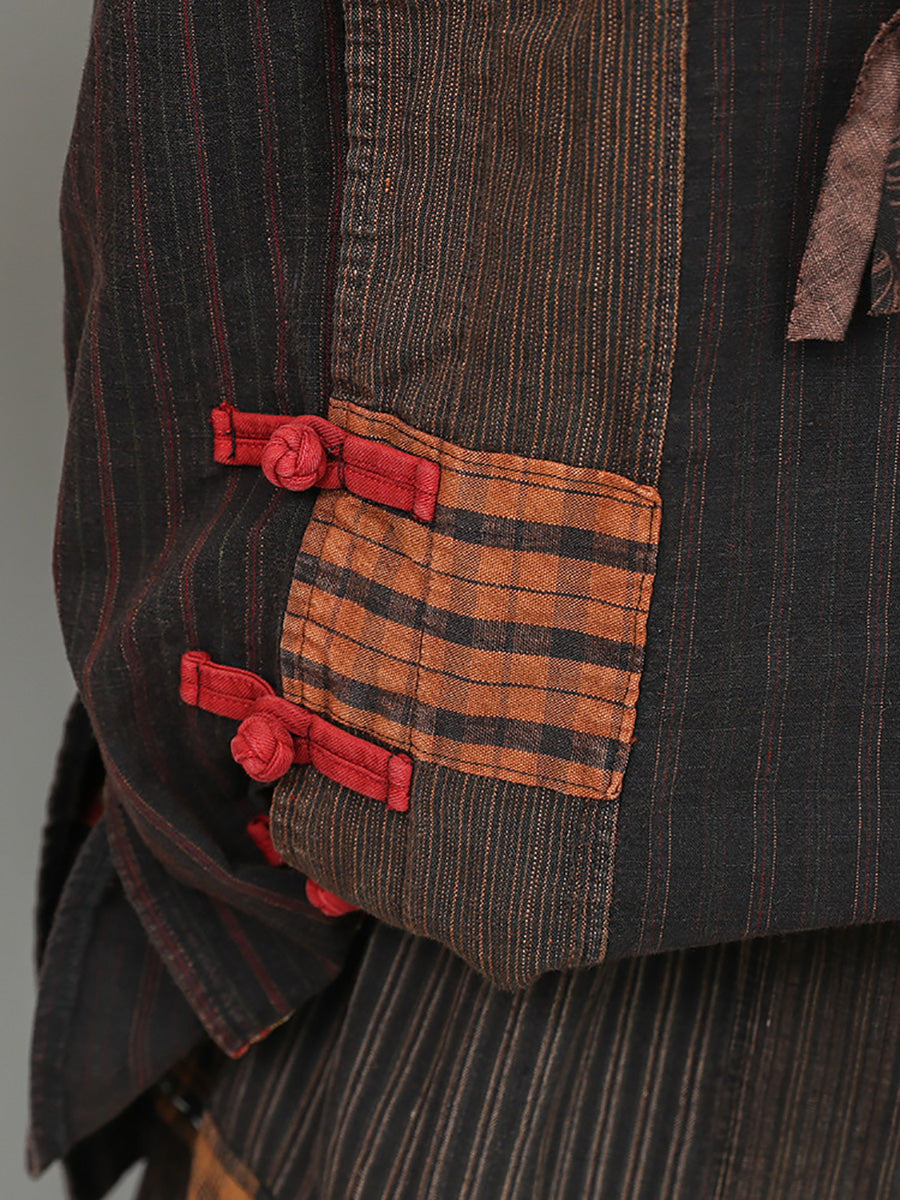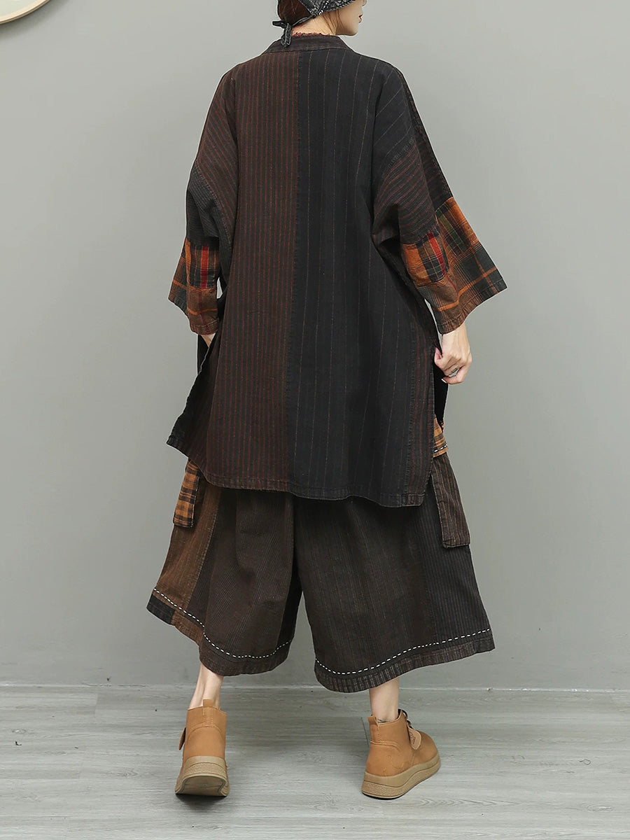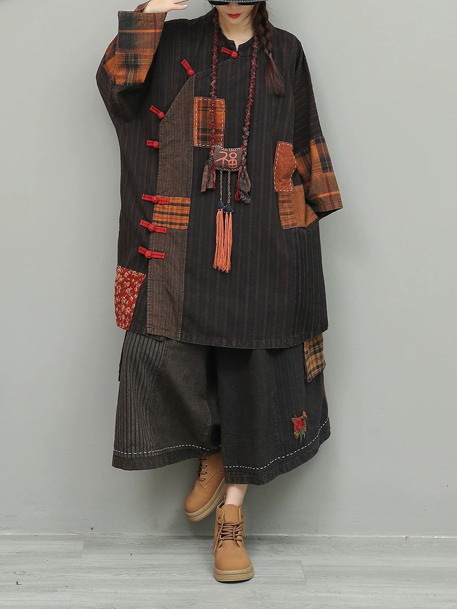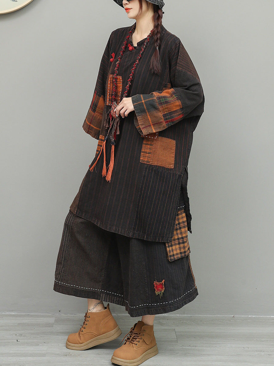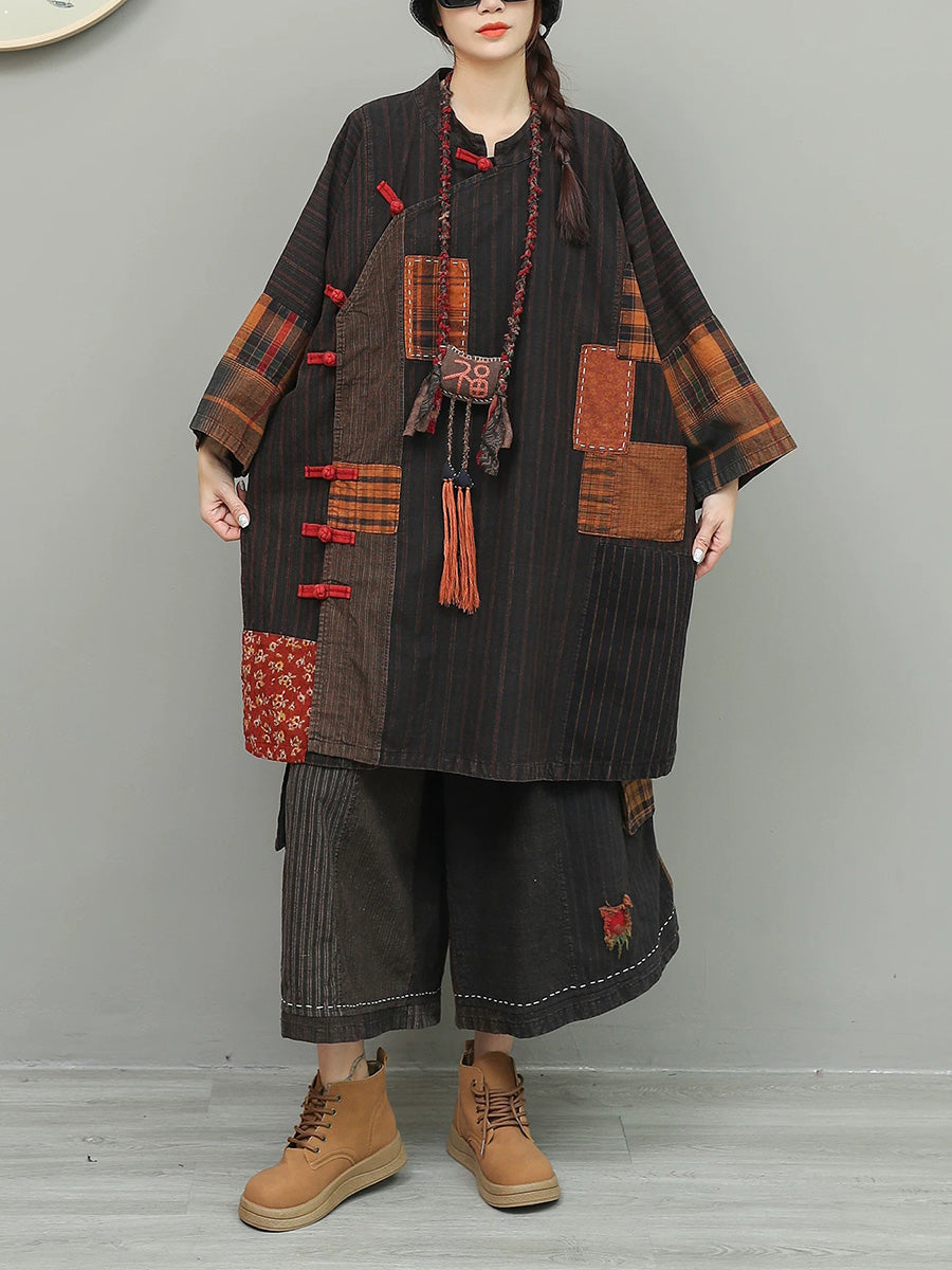 Women Spring Vintage Patchwork O-Neck Suits