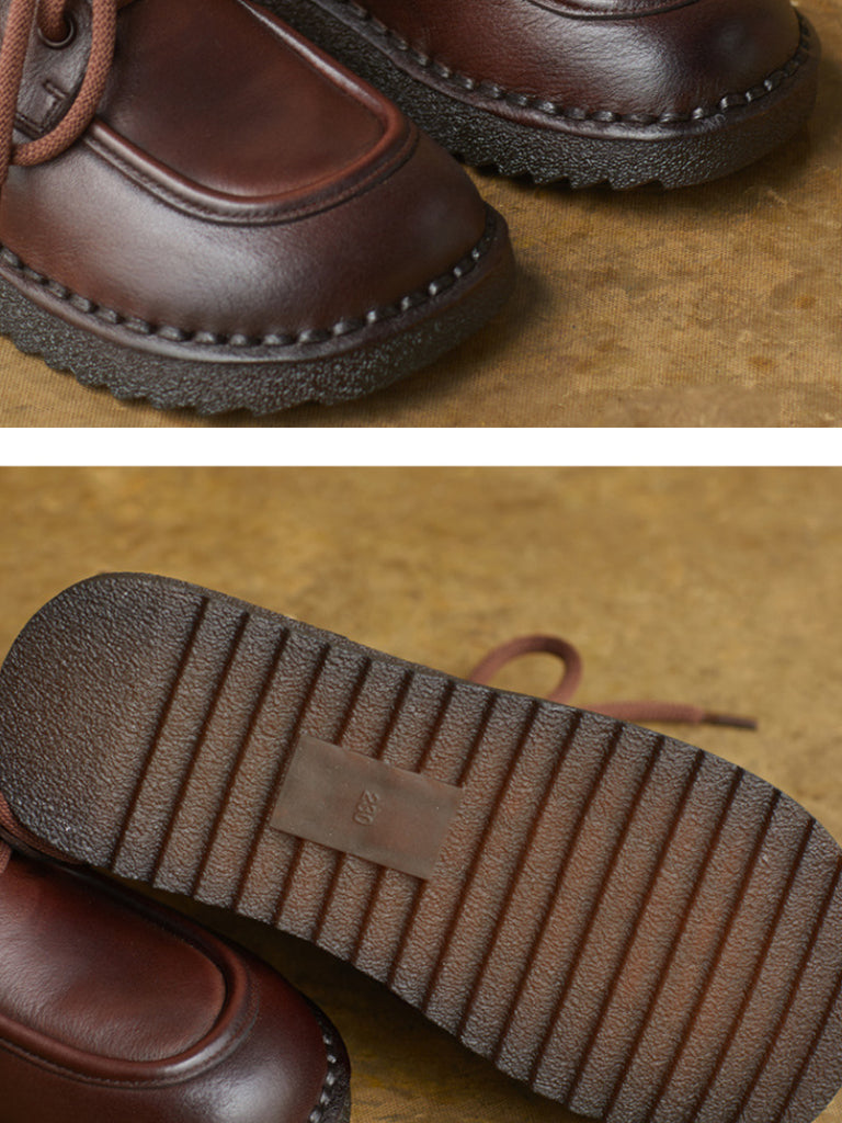 Women Vintage Genuine Leather Spliced Ankle Boots