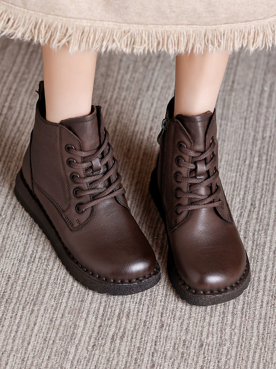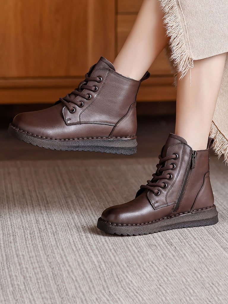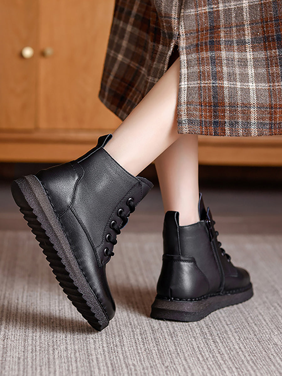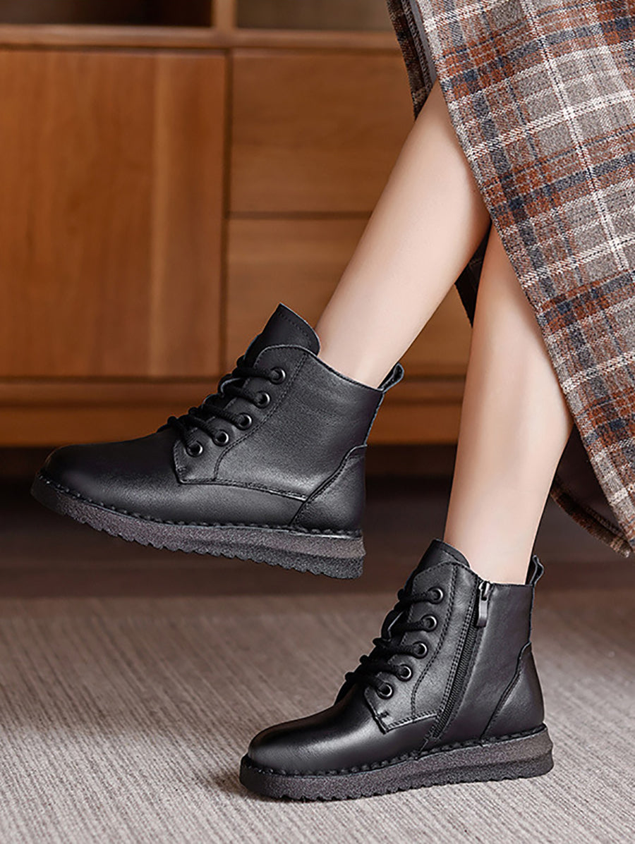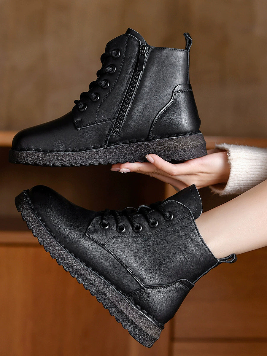 Women Winter Genuine Leather Fleece-lined Martin Boots
