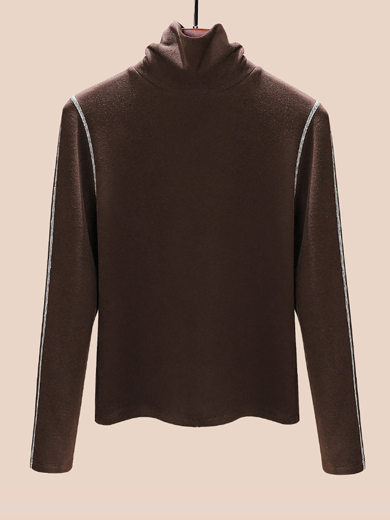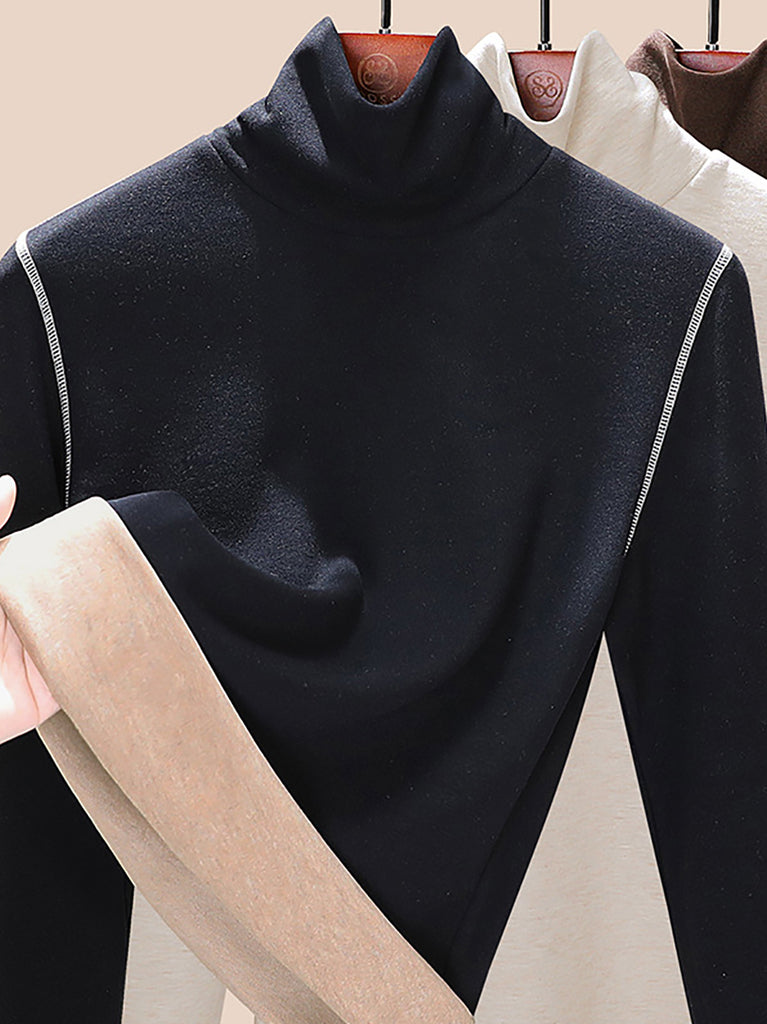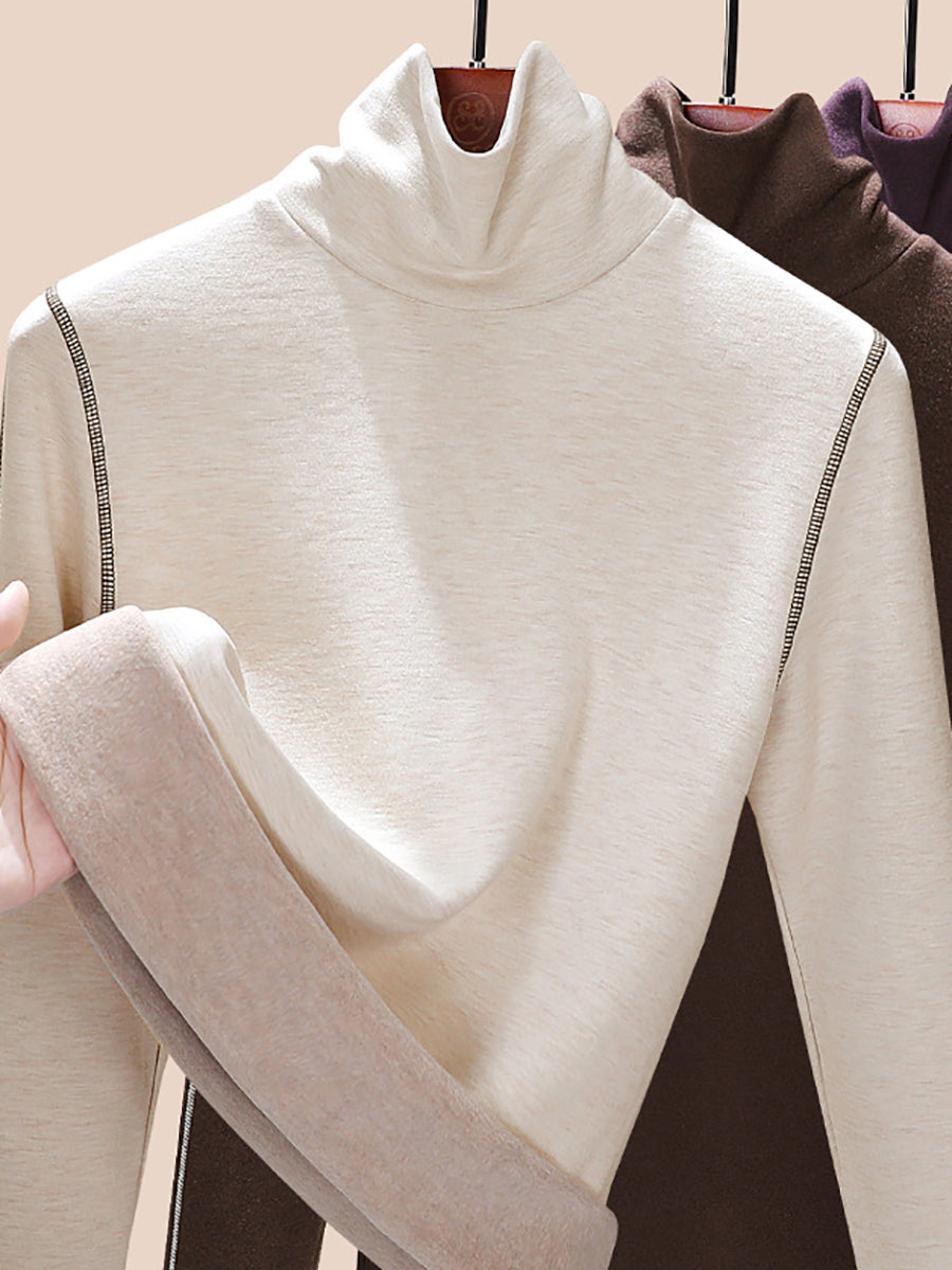 Women Winter Casual Fleece-lined Turtleneck Blouse