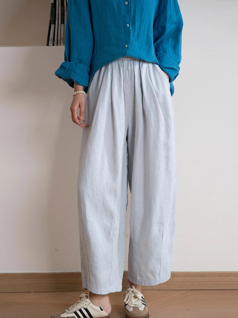 Women Artsy Autumn Pure Color 100%Cotton Blouse