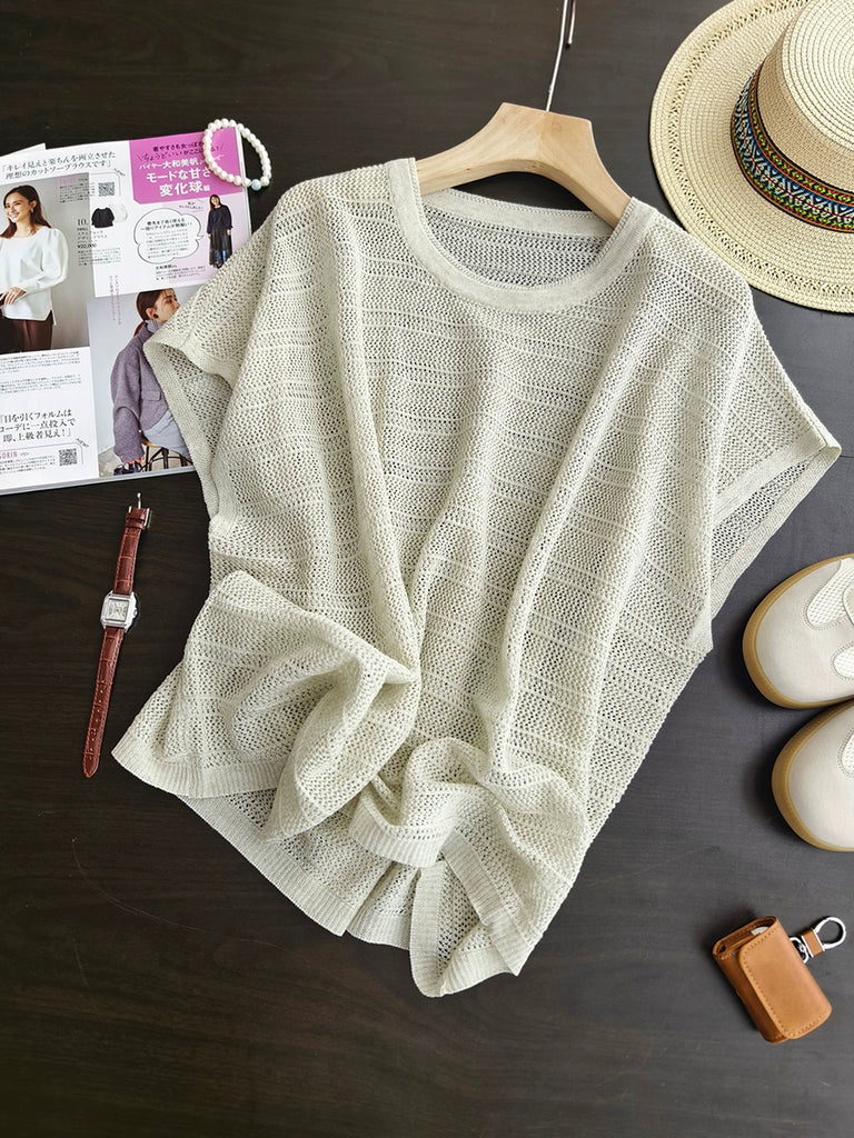 Women Autumn Artsy Pure Color O-Neck Knitted Vest
