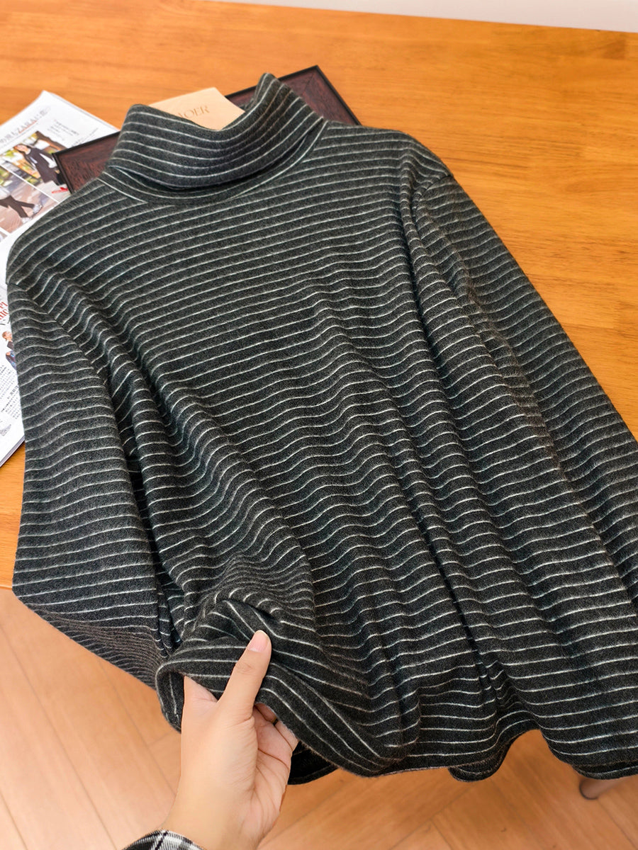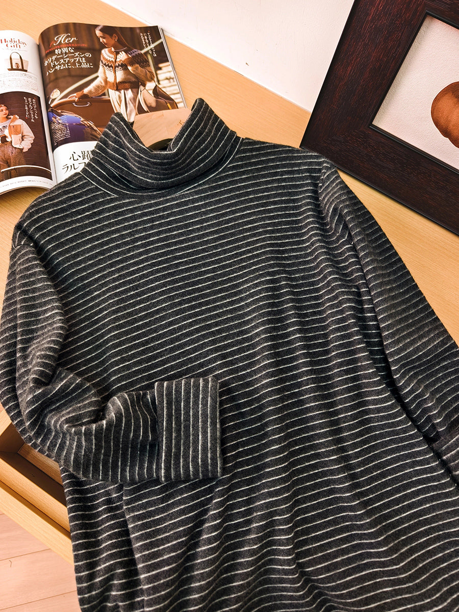 Crafted from a premium blend of 65% polyester, 30% rayon, and 5% spandex, this winter essential delivers both comfort and durability. The classic stripe pattern pairs seamlessly with the cozy turtleneck collar, while full-length regular sleeves provide versatile layering options. Designed for casual wear through autumn and winter months, this blouse balances warmth with refined style for everyday sophistication.