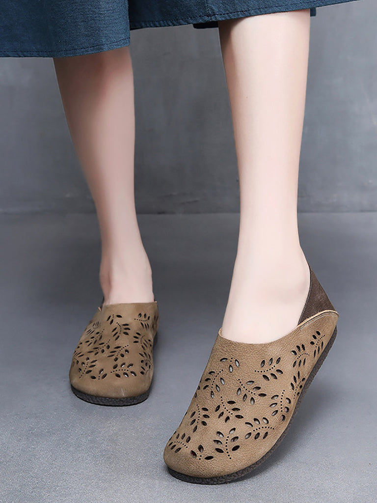 Women Vintage Genuine Leather Flat Shoes