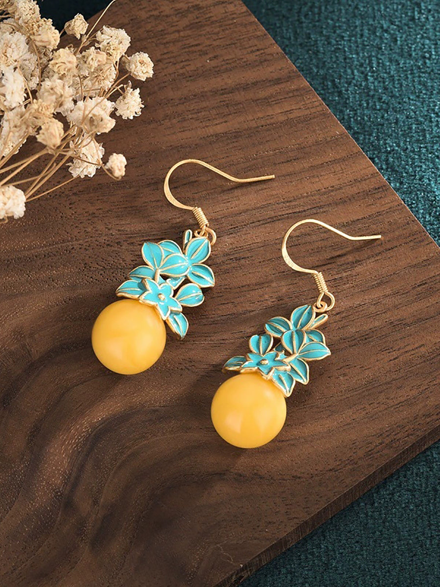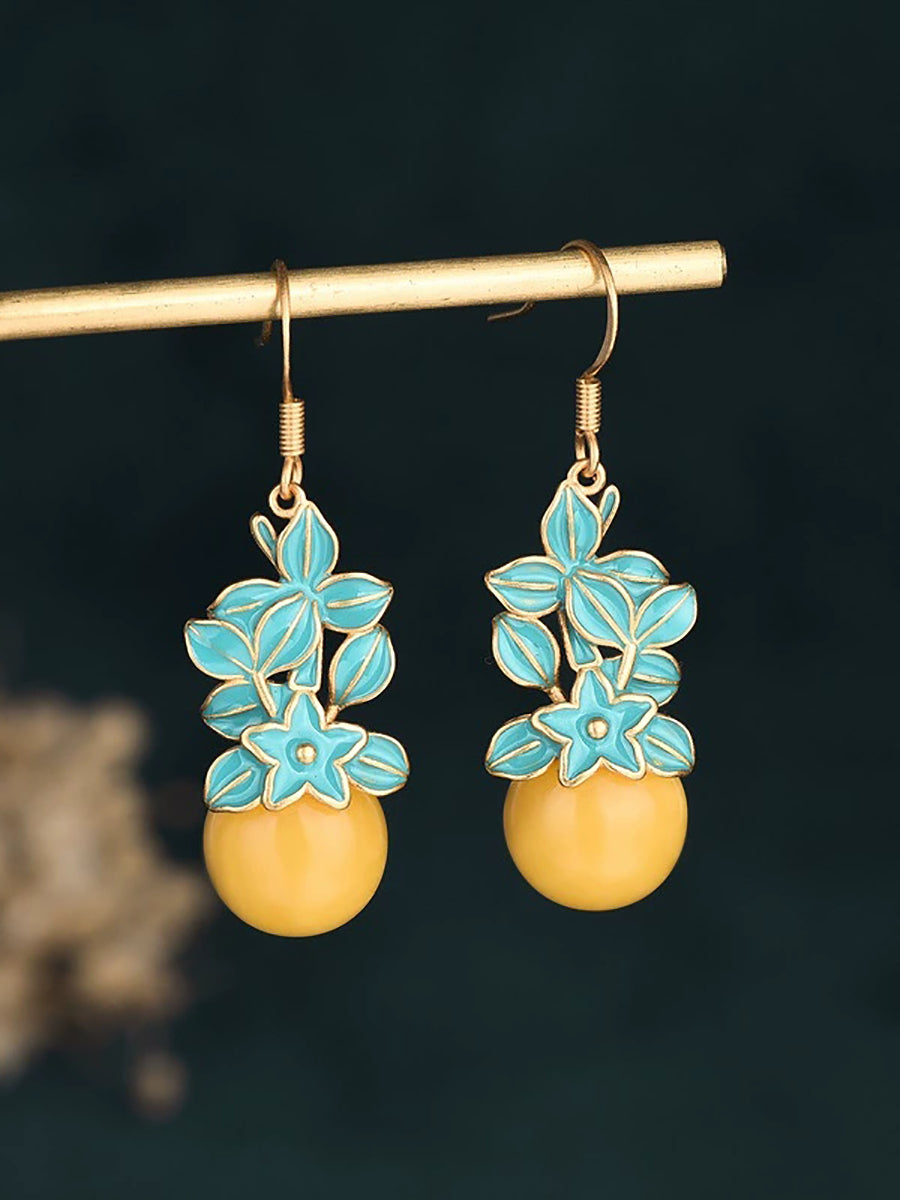 Vintage Wax Beads Enamel Flower Alloy Earrings