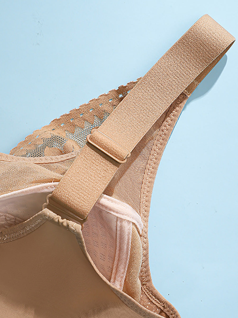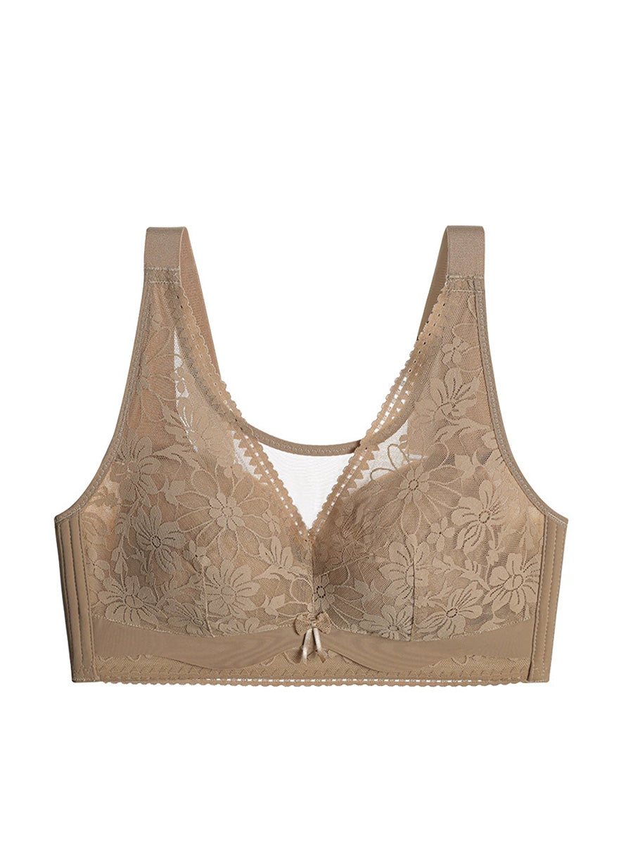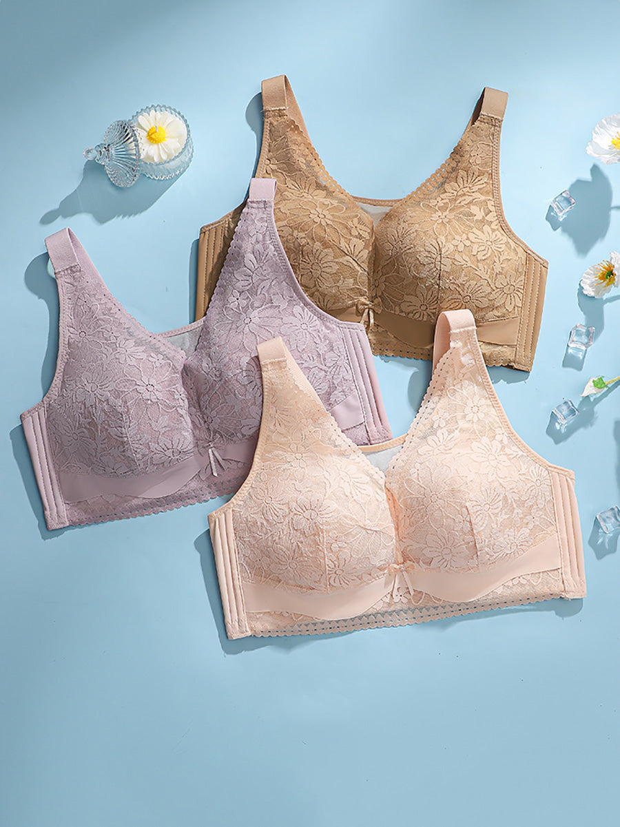 Women Artsy Pure Color Lace Wireless Bra