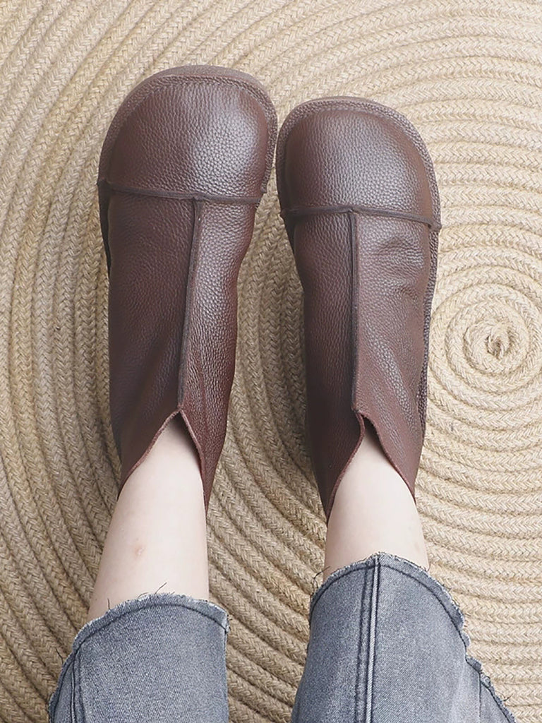 Women Autumn Casual Leather Spliced Low Heel Boots