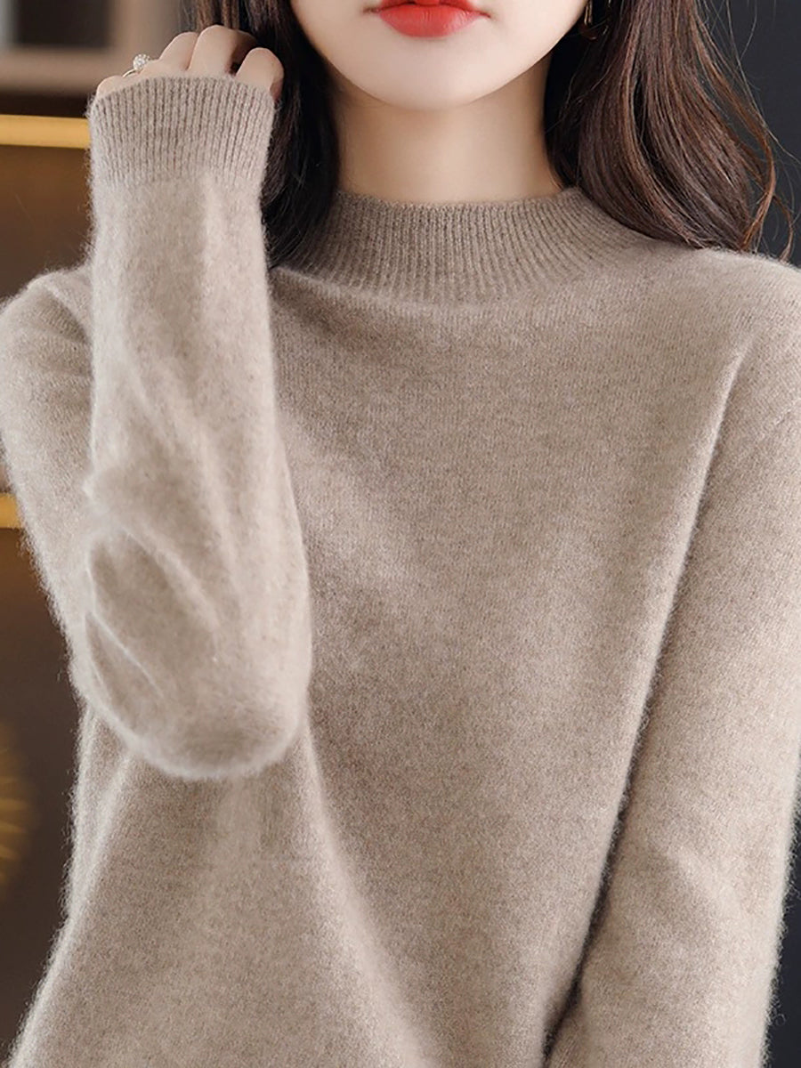 Women Spring Pure Color Half-turtleneck Wool Sweater