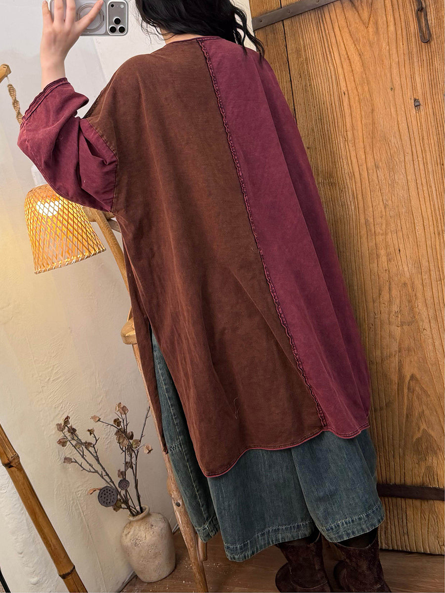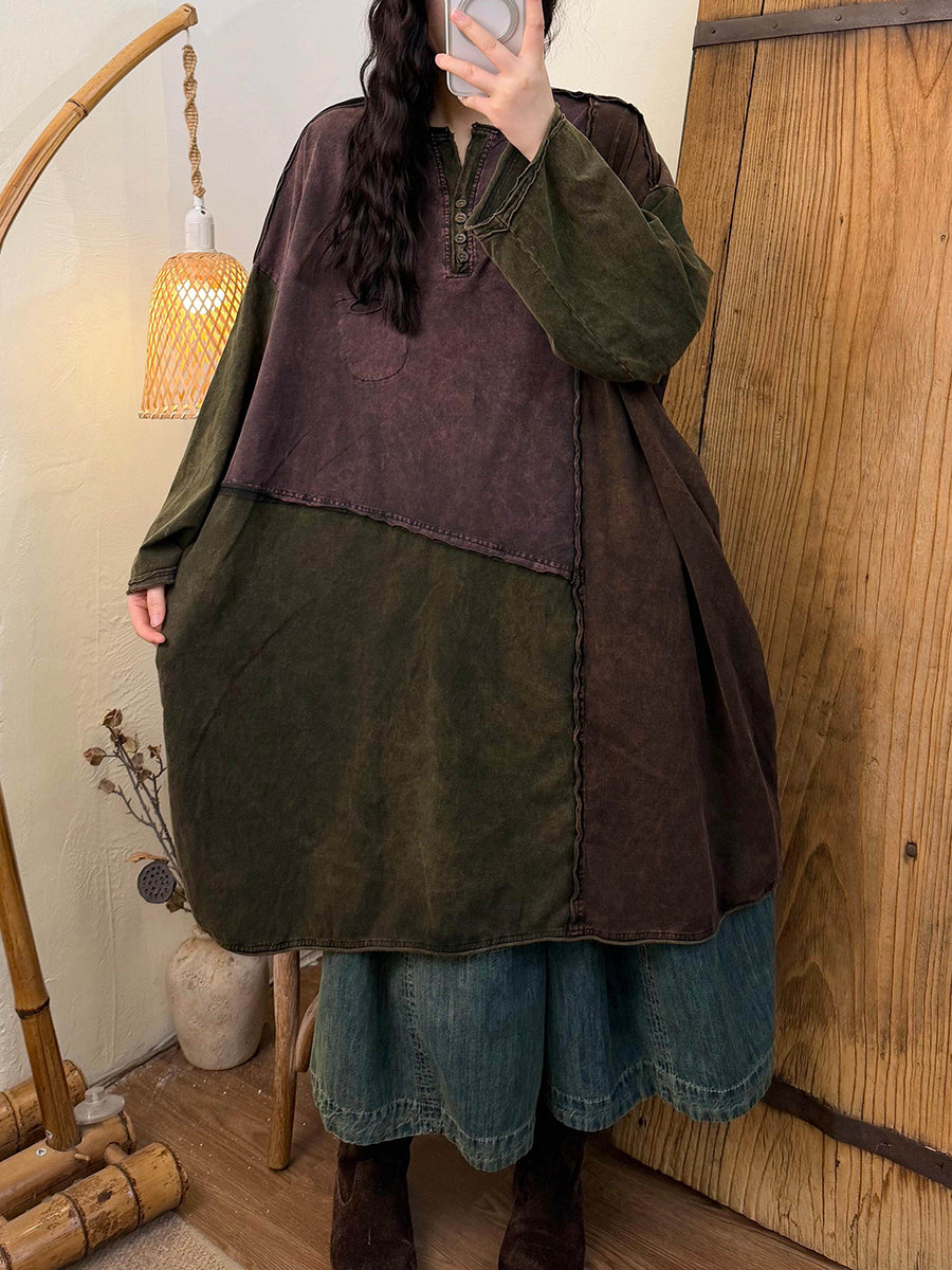 Women Spring Retro Colorblock Cotton Dress