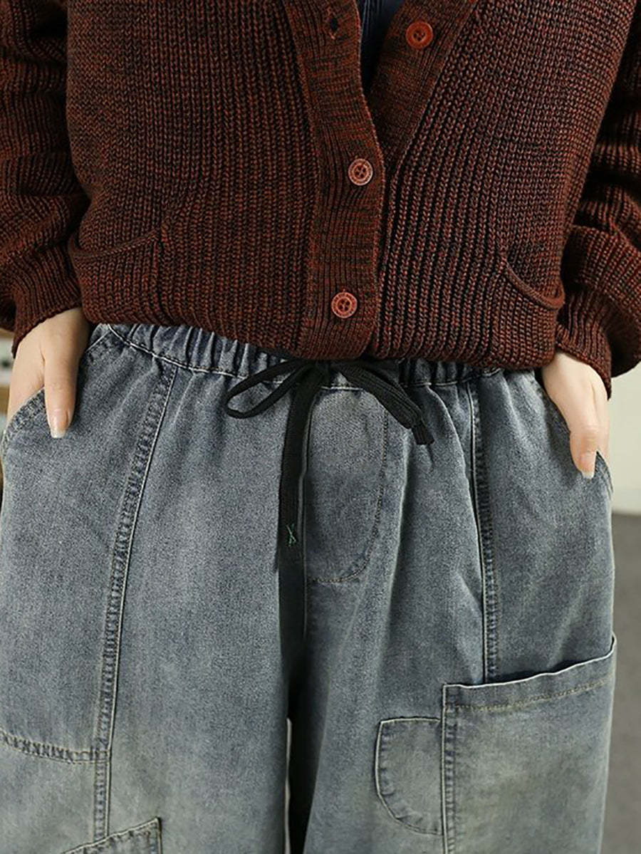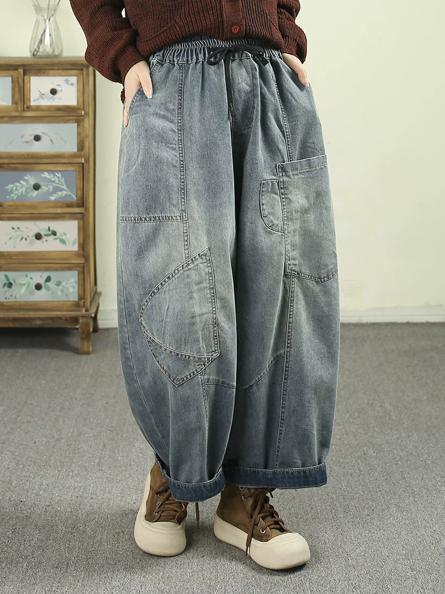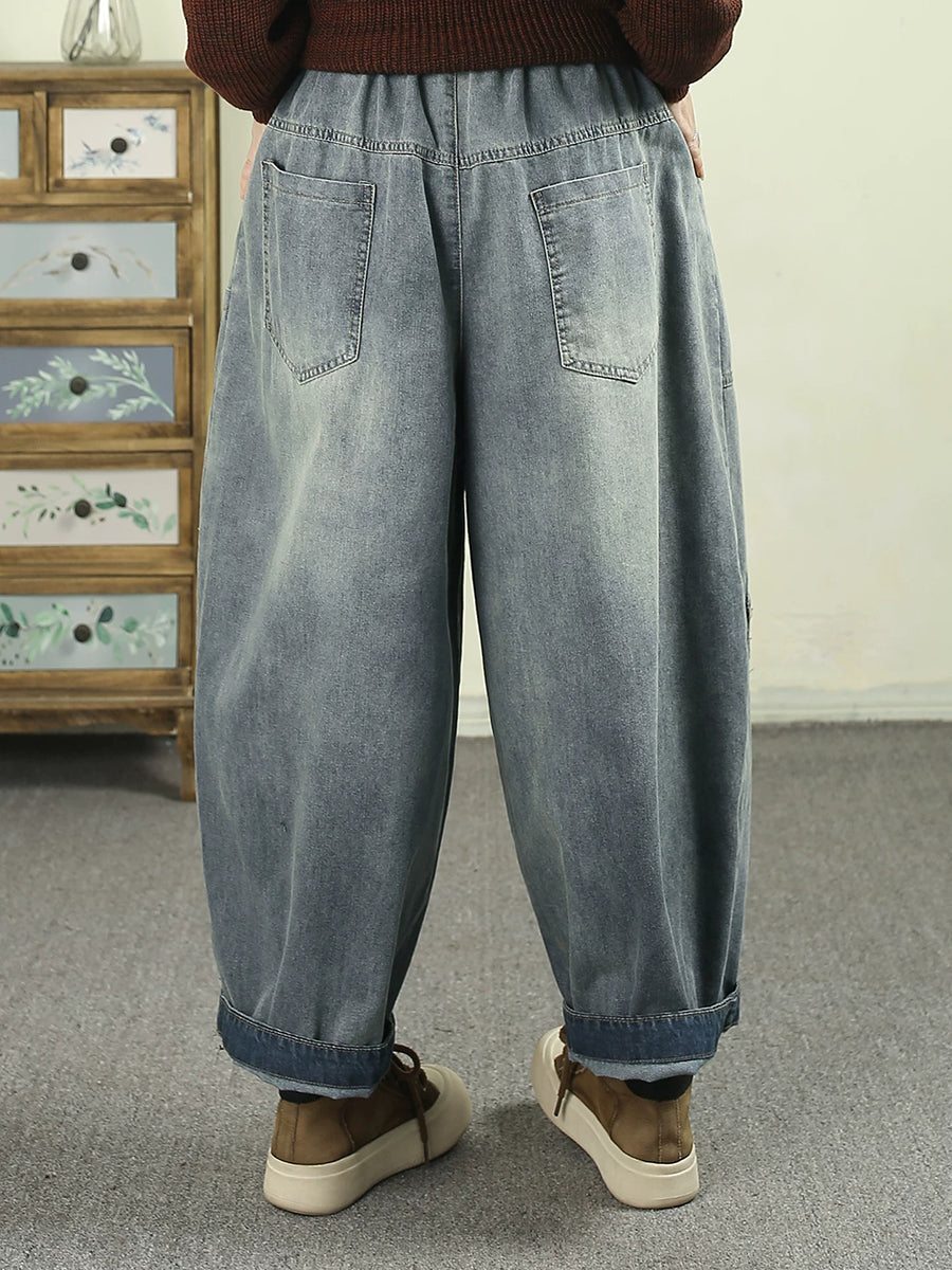 Women Spring Vintage Denim Spliced Harem Pants