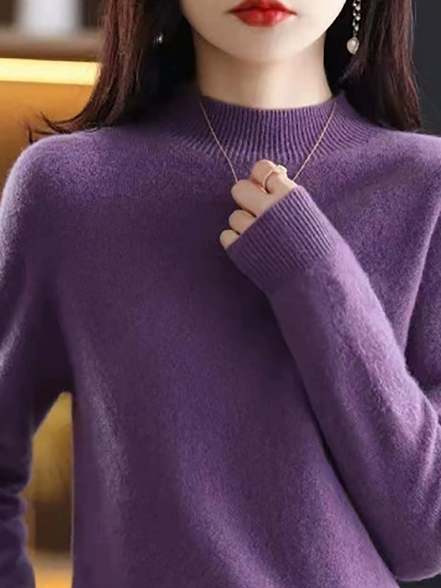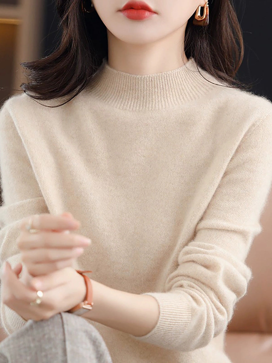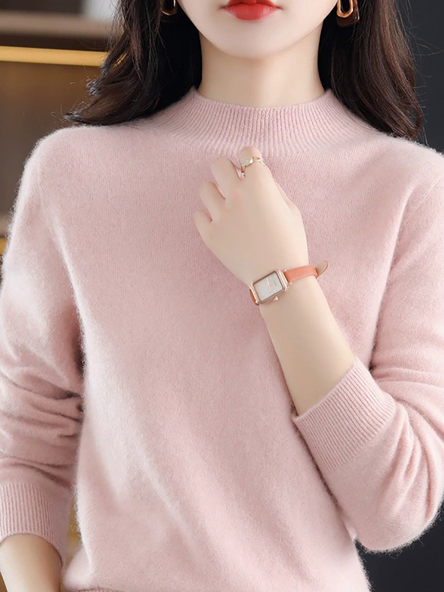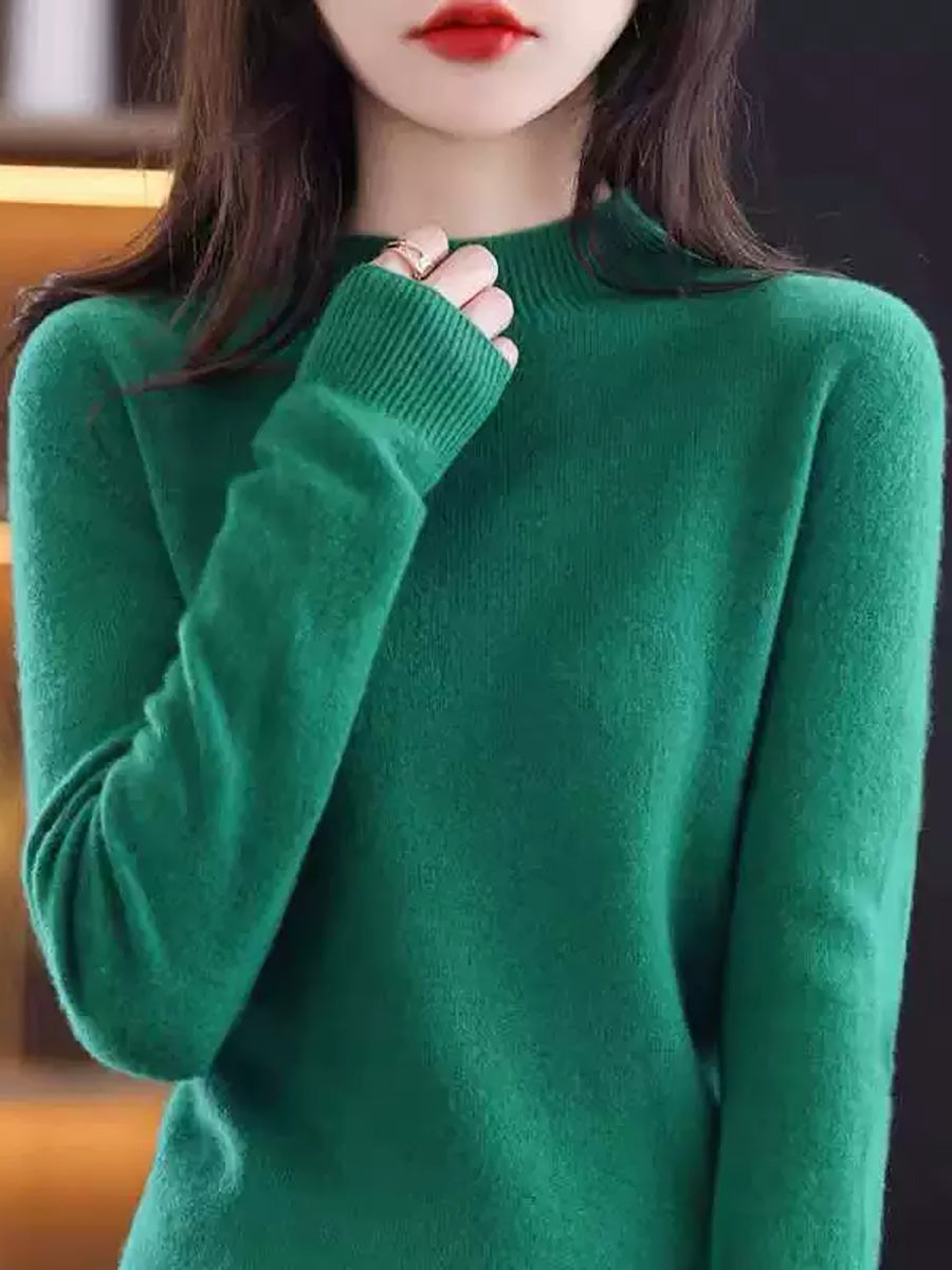 Women Winter Artsy Pure Color Half-Turtleneck Sweater