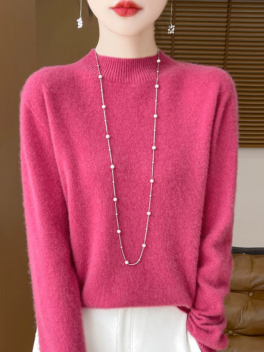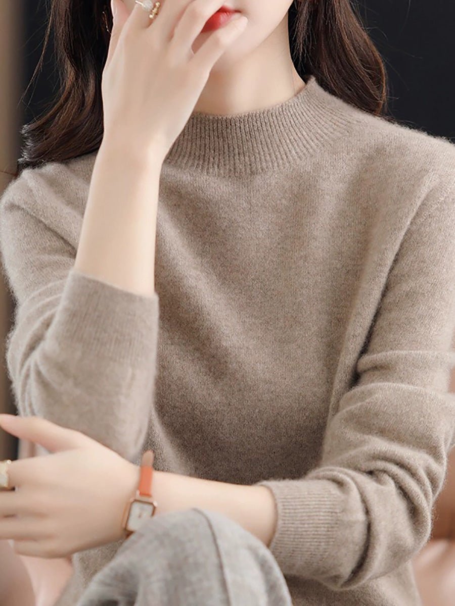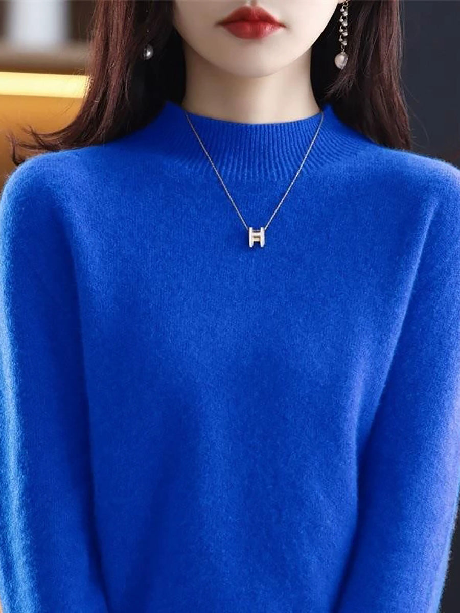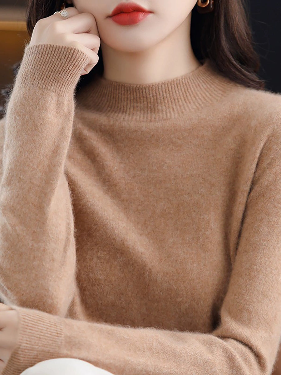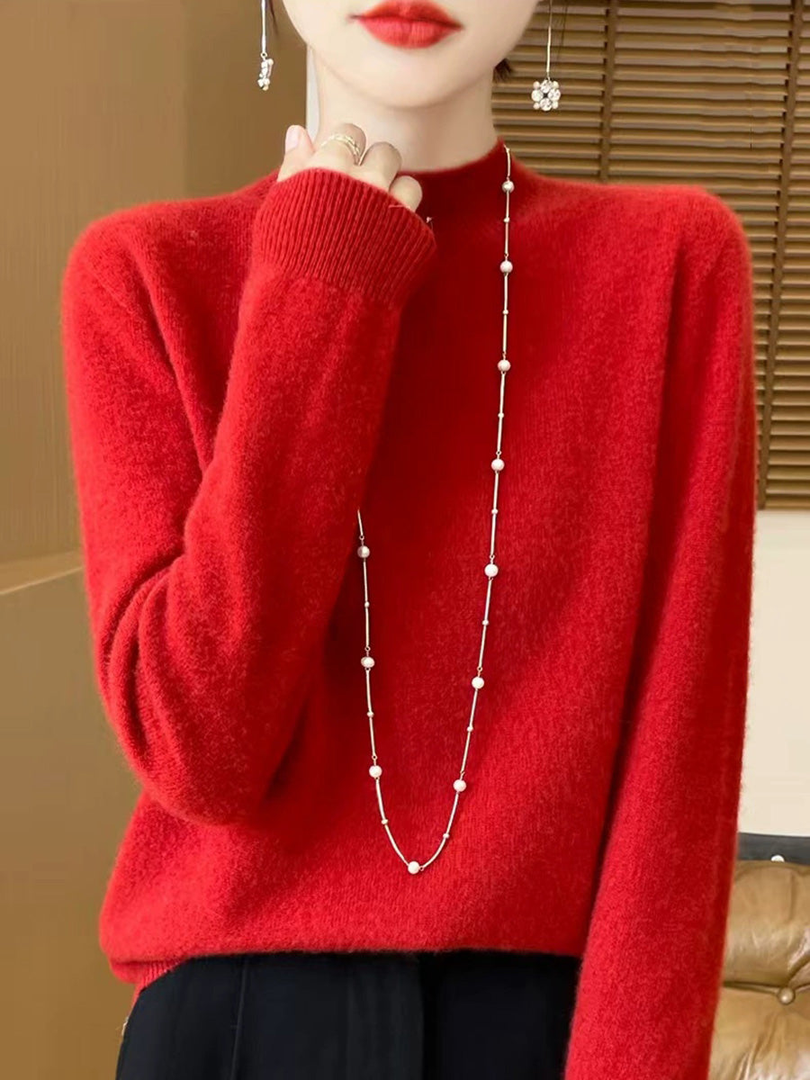 Women Winter Artsy Pure Color Half-Turtleneck Sweater