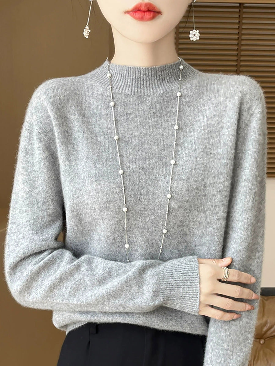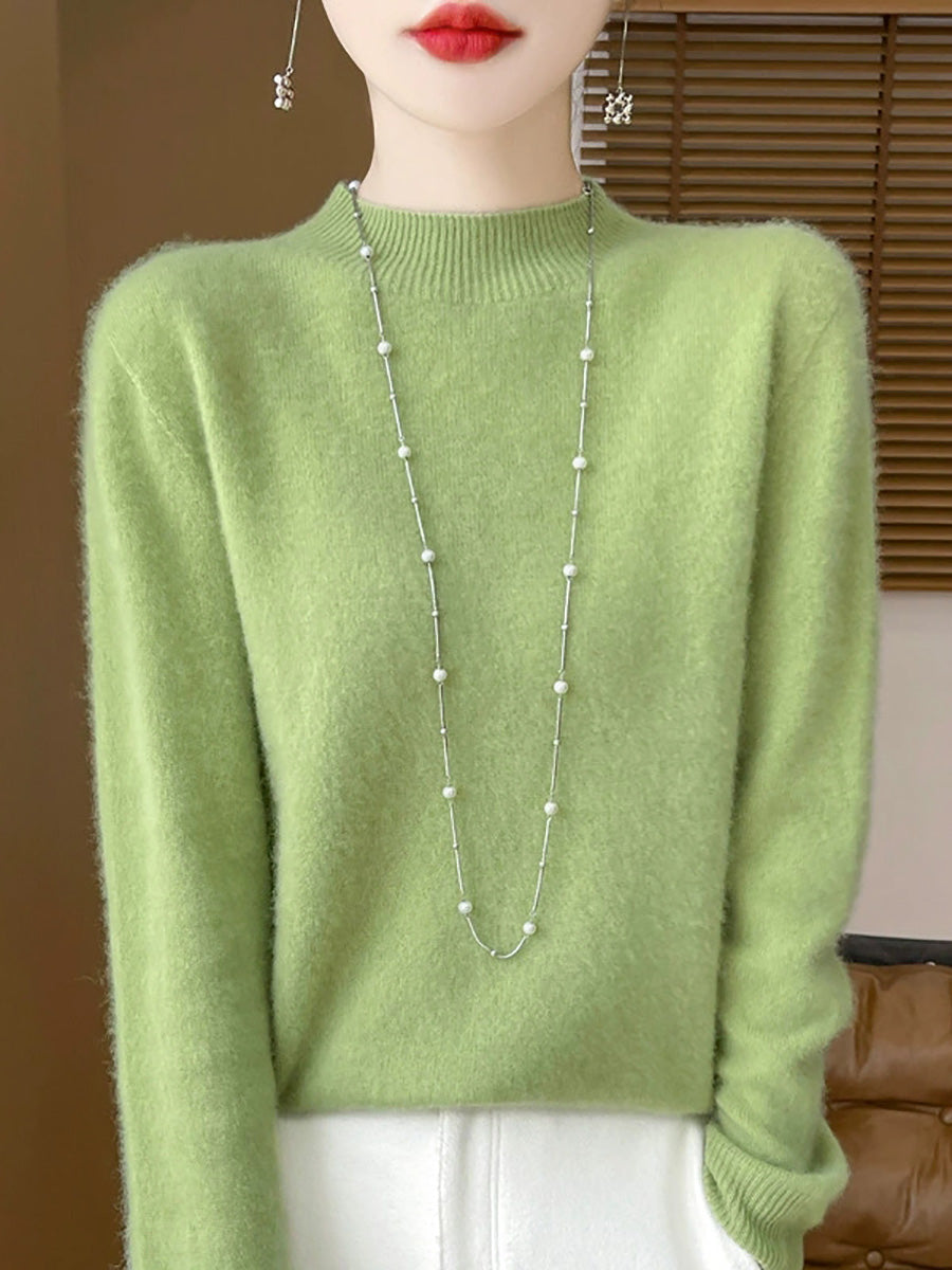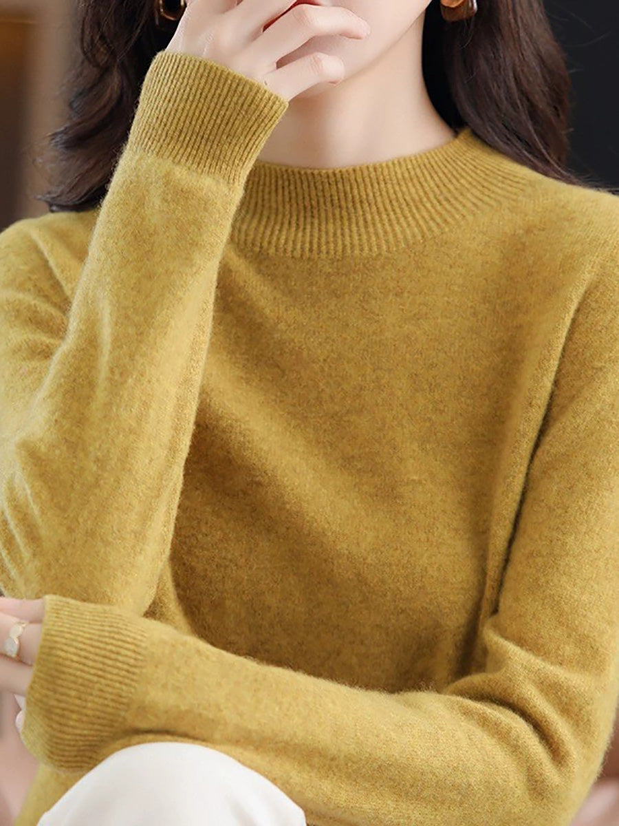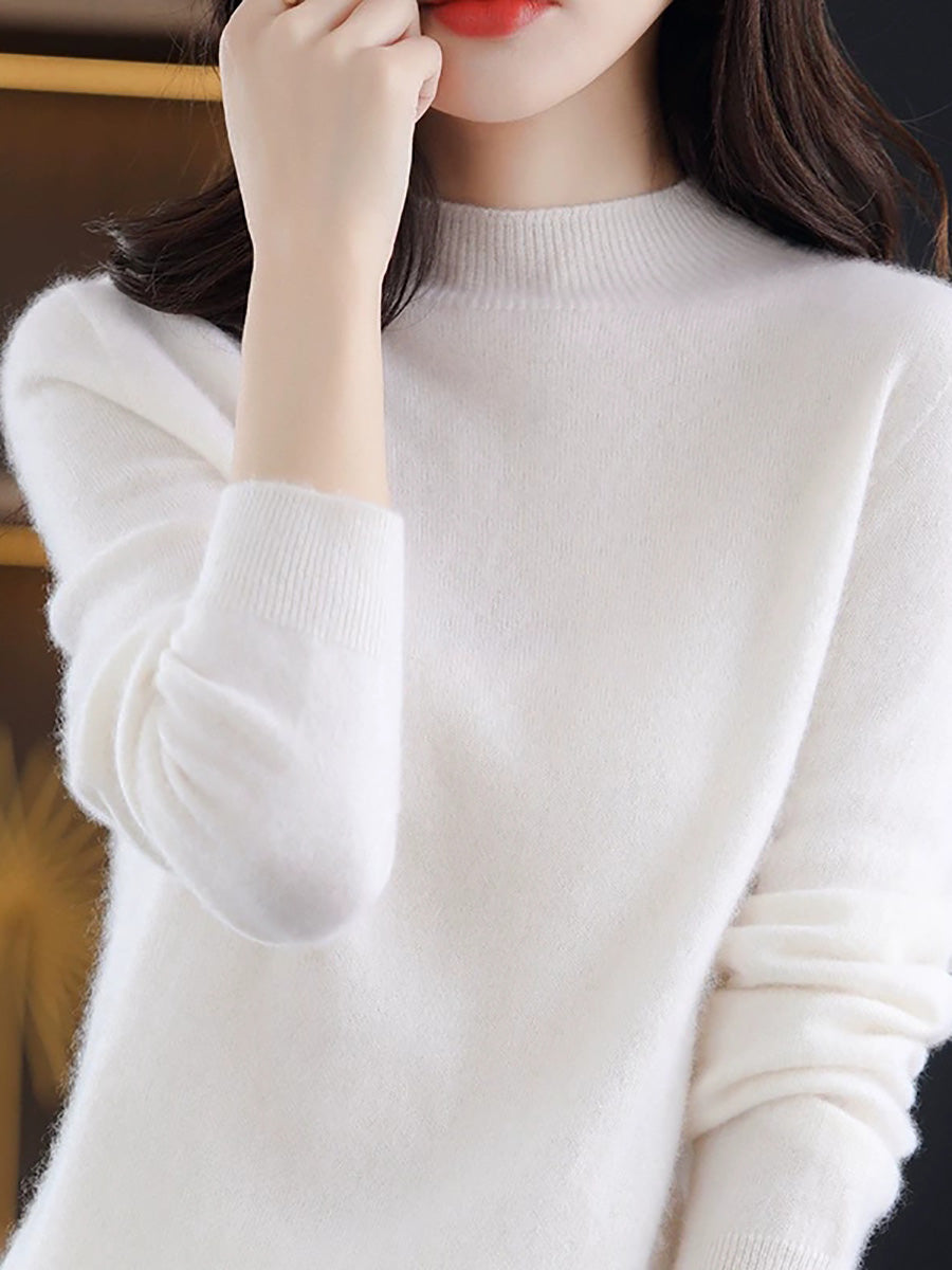 Women Winter Artsy Pure Color Half-Turtleneck Sweater