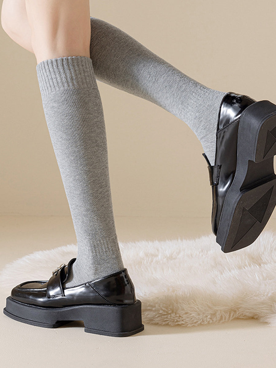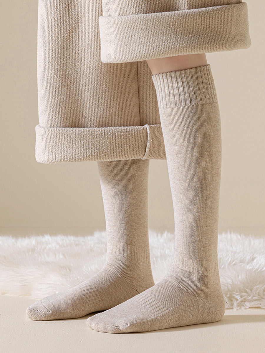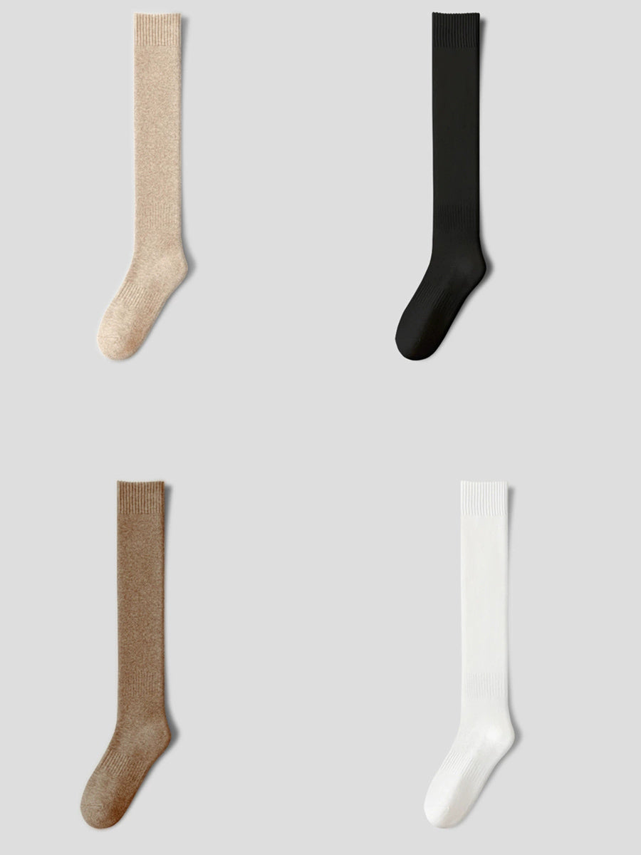 4 Pairs Women Winter Casual Pure Color Calf Socks