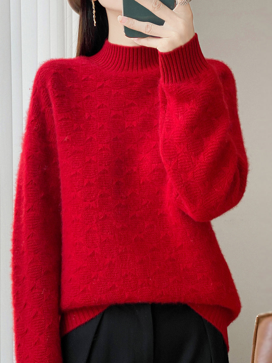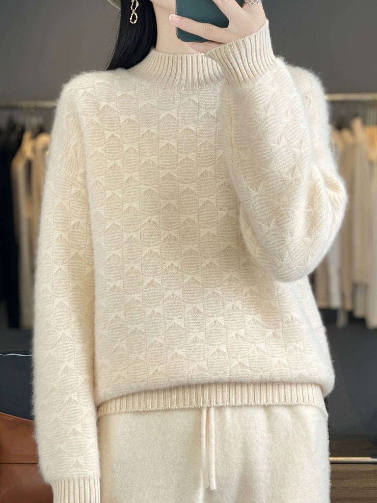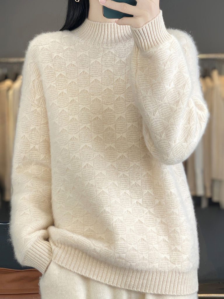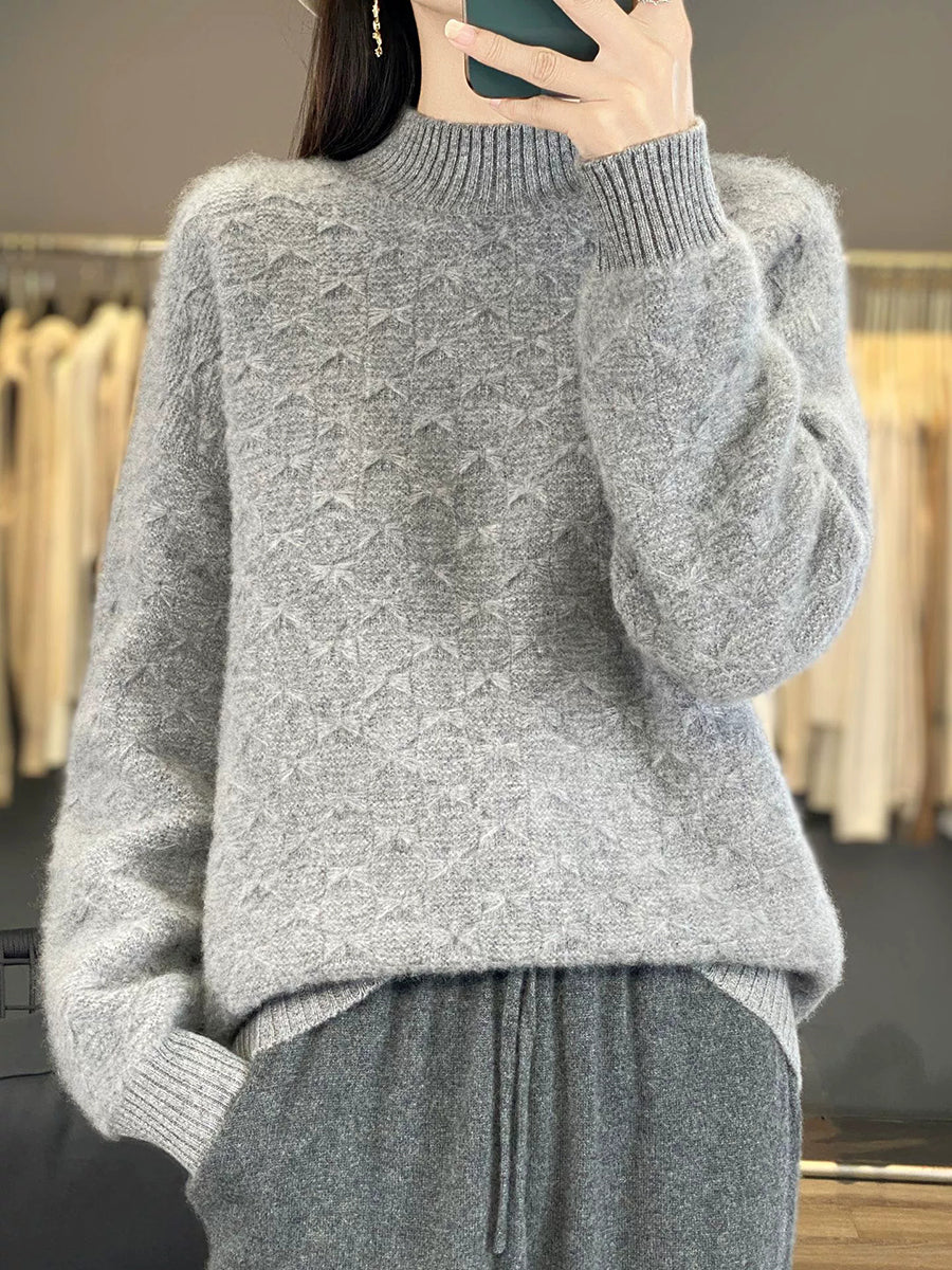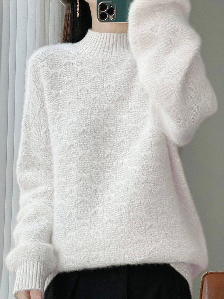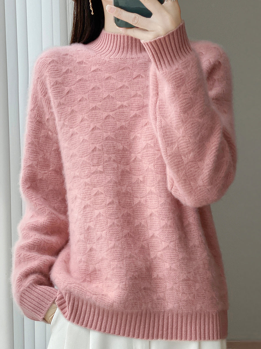 Women Winter Pure Color Bowknot Knitted Half-Turtleneck Sweater