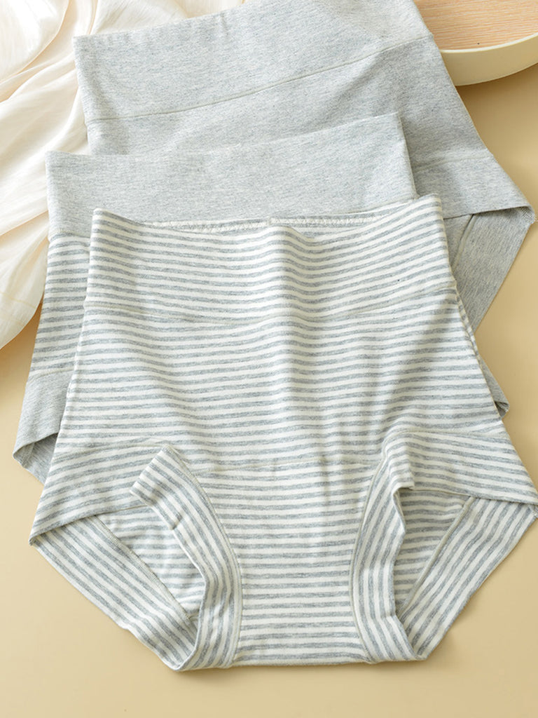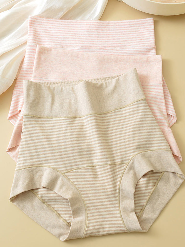 6 Pieces Women Casual Stripe High Waist Cotton Underwear