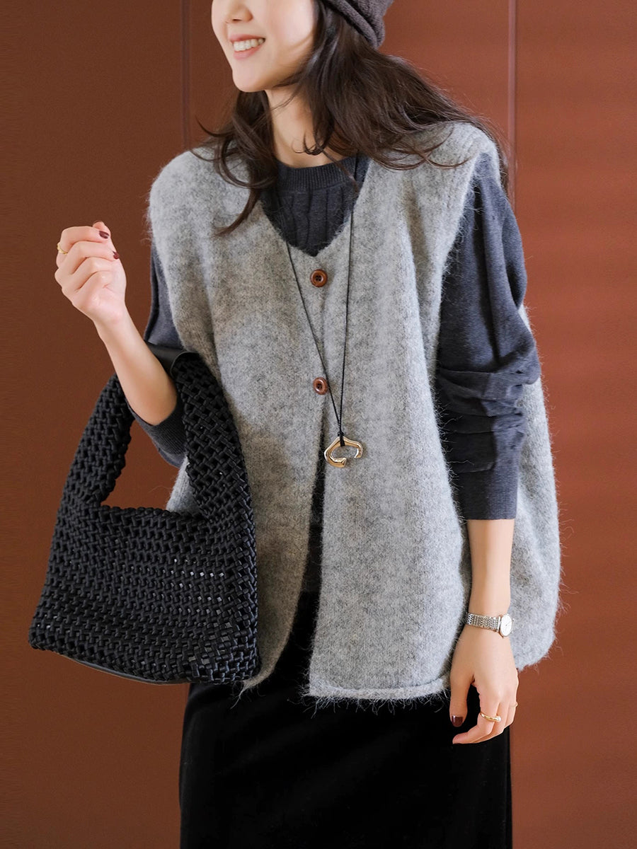 Women Winter Casual Pure Color V-Neck Wool Vest