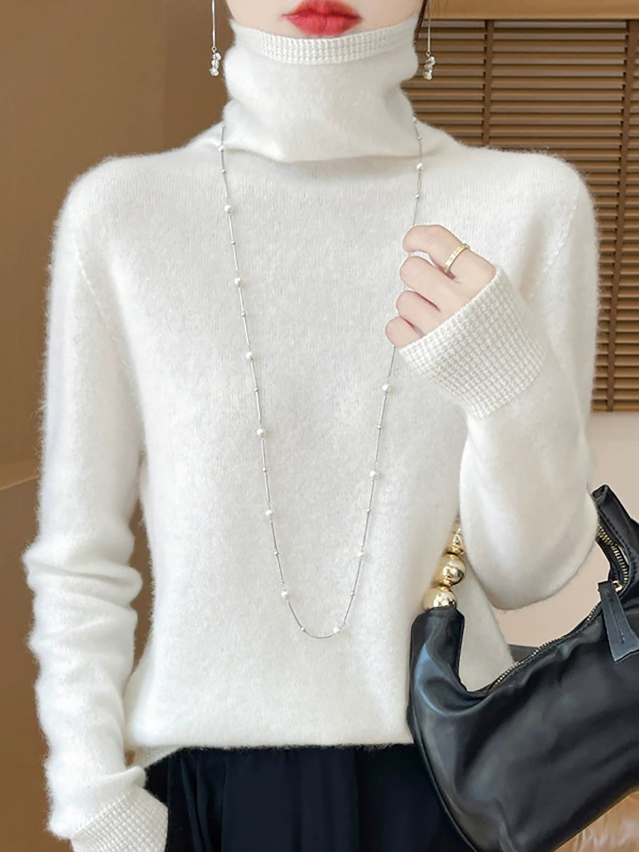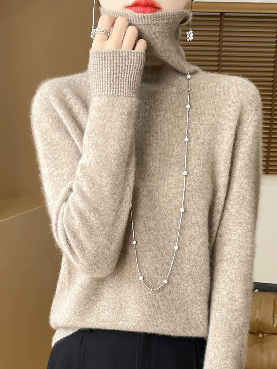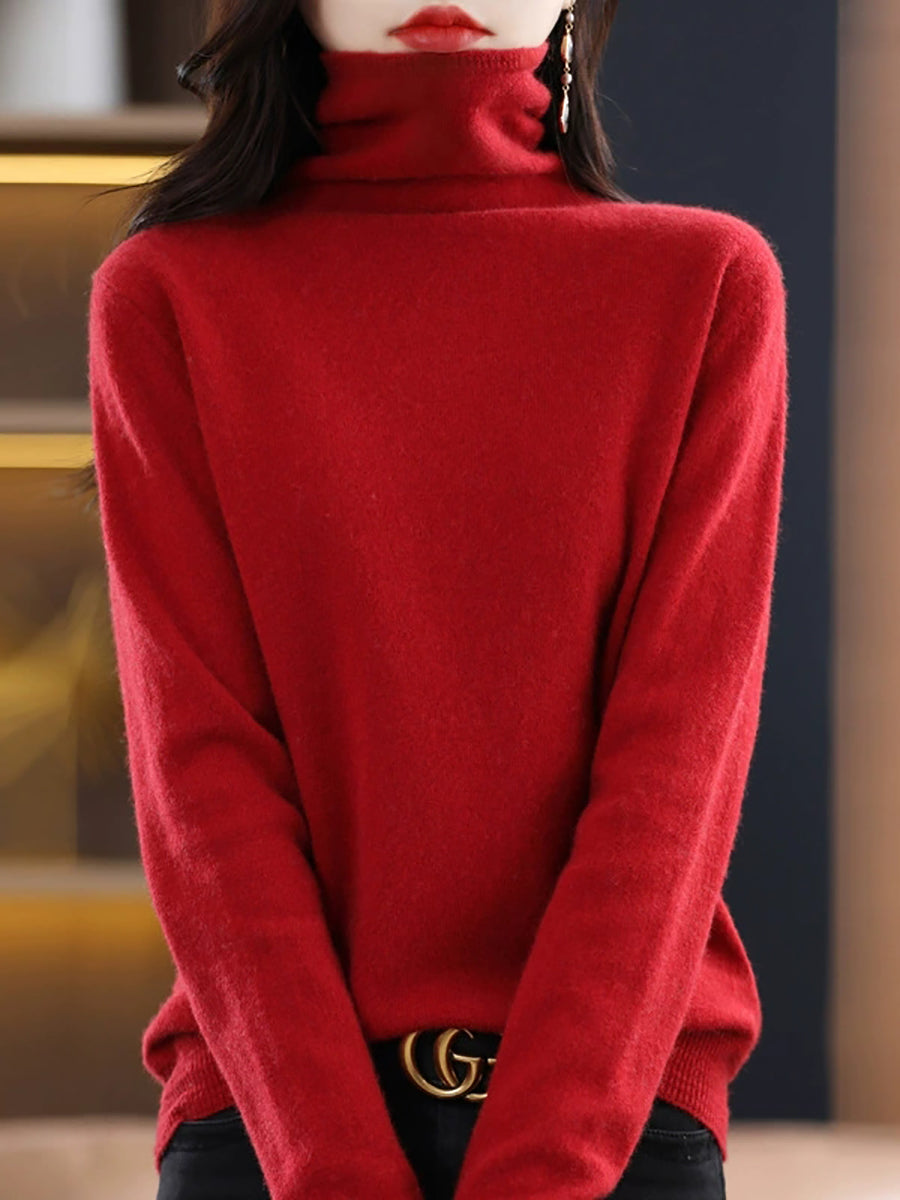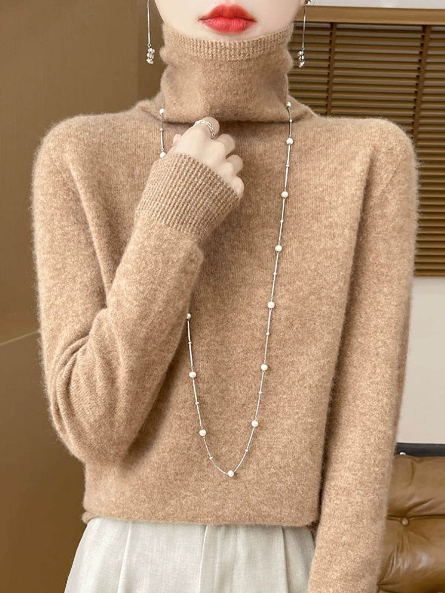 Women Casual Spring Pure Color Turtleneck Sweater